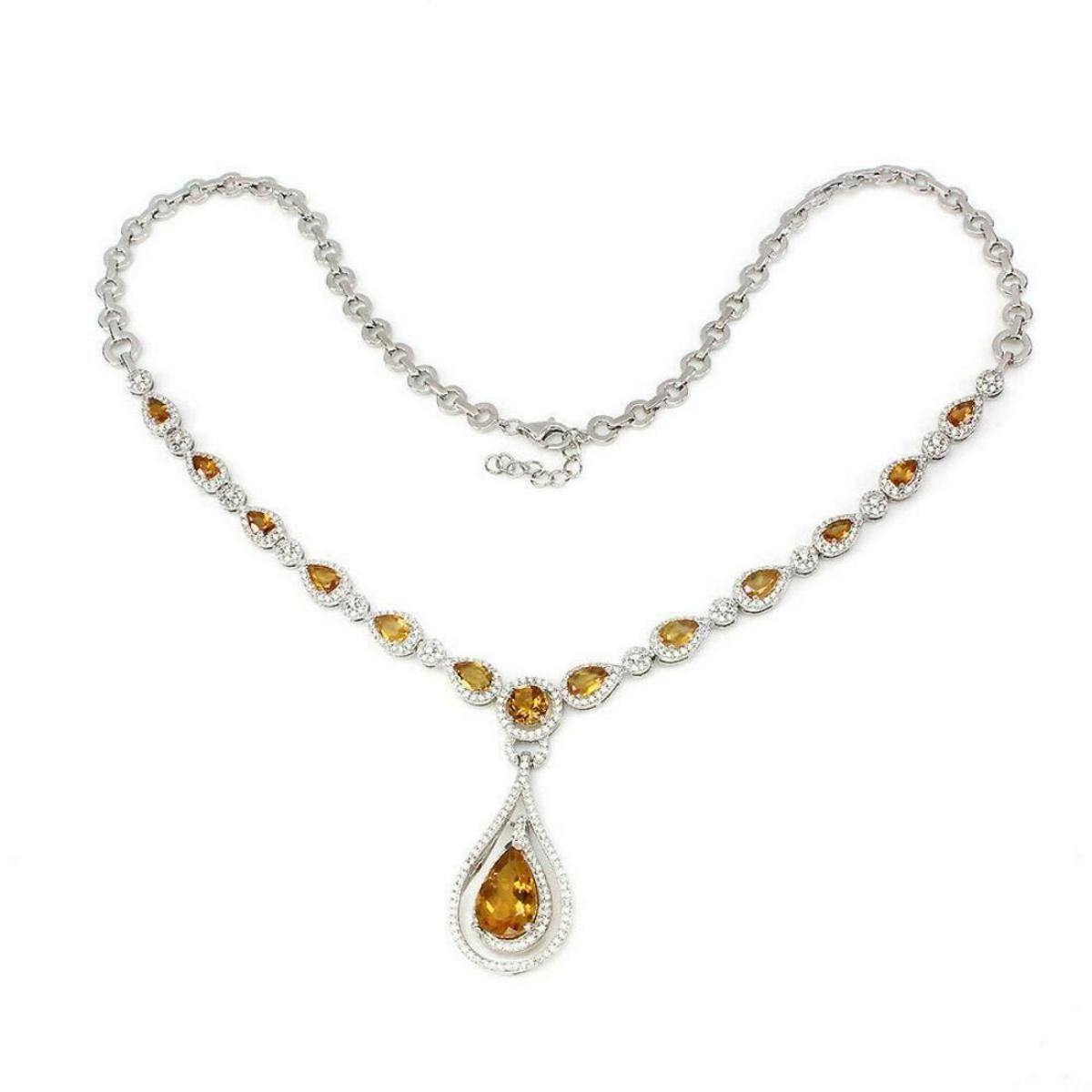 925 STERLING SILVER;PLATE-14K WHITE GOLD;LENGTH (INCHES)17;MAIN STONE-CITRINE;TOTAL WEIGHT-23.44 GRAM (TOTAL WEIGHT OF SILVER + STONE)DIMENSION* STONE 5.0 X 3.0 TO 13.0 X 9.0 MM. * CZ 1.0 TO 2.0 MM. * STONES PART LENGTH -175.0 X 44.0 MM.;MAIN STONE SHAPE-PEAR CUT;MAIN STONE COLOR-TOP RICH YELLOW;CLARITY/GRADEIF TO VVS;TREATMENT-UNHEATED;ORIGIN-BRAZIL;HARDNESS-7;