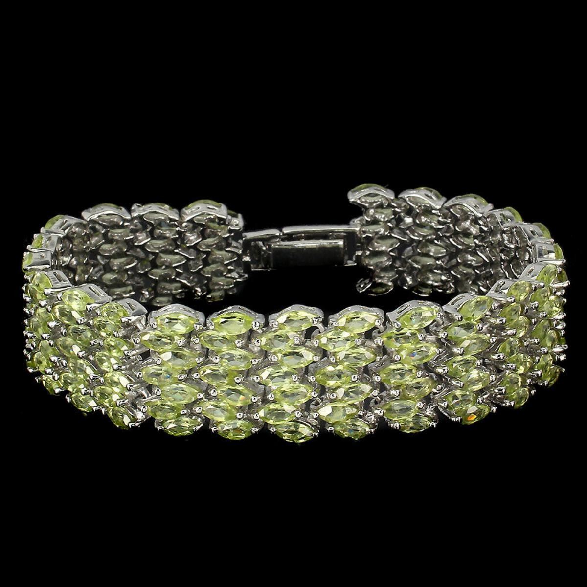 925 STERLING SILVER;PLATE-14K WHITE GOLD;LENGTH (INCHES)-7.5;MAIN STONE-PERIDOT;TOTAL WEIGHT-33.94 GRAM (TOTAL WEIGHT OF SILVER + STONE);DIMENSION-* STONE 5.0 X 2.5 MM.* LENGTH 7.5 INCHES.* FACE BRACELET 170.0 X 16.0 MM.;MAIN STONE SHAPE-MARQUISE CUT;MAIN STONE COLOR-GREEN;CLARITY/GRADE-IF;TREATMENT-UNHEATED;ORIGIN-PAKISTAN;