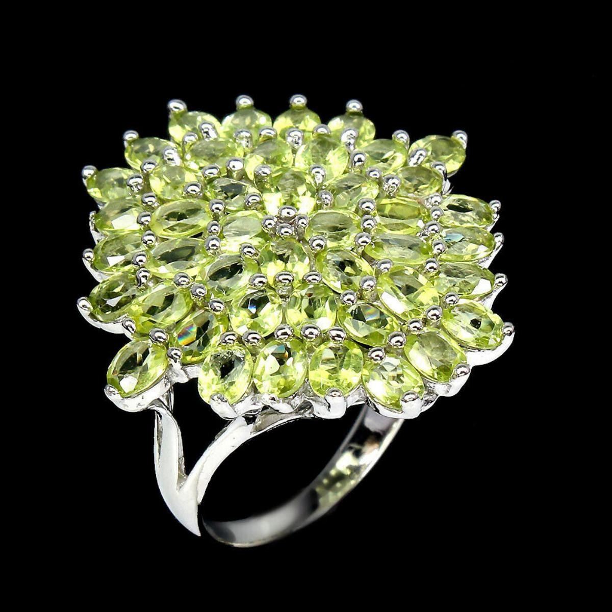 925 STERLING SILVER;PLATE-14K WHITE GOLD;RING SIZE-8(RESIZABLE);MAIN STONE-PERIDOT;TOTAL WEIGHT-8.04 GRAM (TOTAL WEIGHT OF SILVER + STONE);DIMENSION- * STONE 4.0 X 3.0 MM.* RING SIZE 8.0* FACE RING 29.0 X 28.0 MM.;MAIN STONE SHAPE-OVAL CUT;MAIN STONE COLOR-GREEN;CLARITY/GRADE-IF;TREATMENT-UNHEATED;ORIGIN-PAKISTAN;
