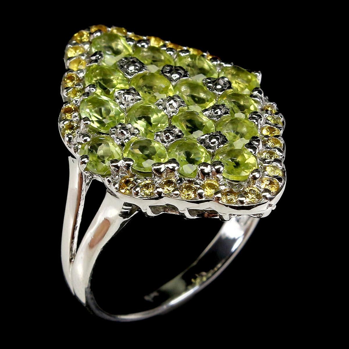925 STERLING SILVER;PLATE-14K WHITE GOLD;RING SIZE-8(RESIZABLE);MAIN STONE-PERIDOT;OTHER GEMS-SAPPHIRE DIAMOND CUT;TOTAL WEIGHT-5.78 GRAM (TOTAL WEIGHT OF SILVER + STONE);DIMENSION-* STONE 1.5 TO 4.0 X 3.0 MM. * RING SIZE 8.0 * FACE RING 25.0 X 18.0 MM.;MAIN STONE SHAPE-OVAL CUT;MAIN STONE COLOR- GREEN;CLARITY/GRADE-IF;TREATMENT-UNHEATED;ORIGIN-PAKISTAN;HARDNESS-6.5 - 7.0;