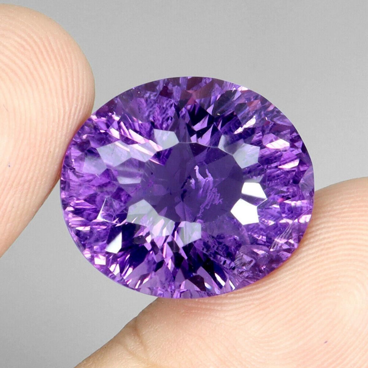 TOTAL WEIGHT- 16.64 CT ; DIMENSION- 18.0 X 15.0 X 11.0 MM.; MAIN STONE SHAPE- OVAL CONCAVE CUT; MAIN STONE COLOR-TOP RICH PURPLE; CLARITY/GRADE - VS/VVS; TREATMENT- UNHEATED; ORIGIN- URUGUAY; HARDNESS- 7;