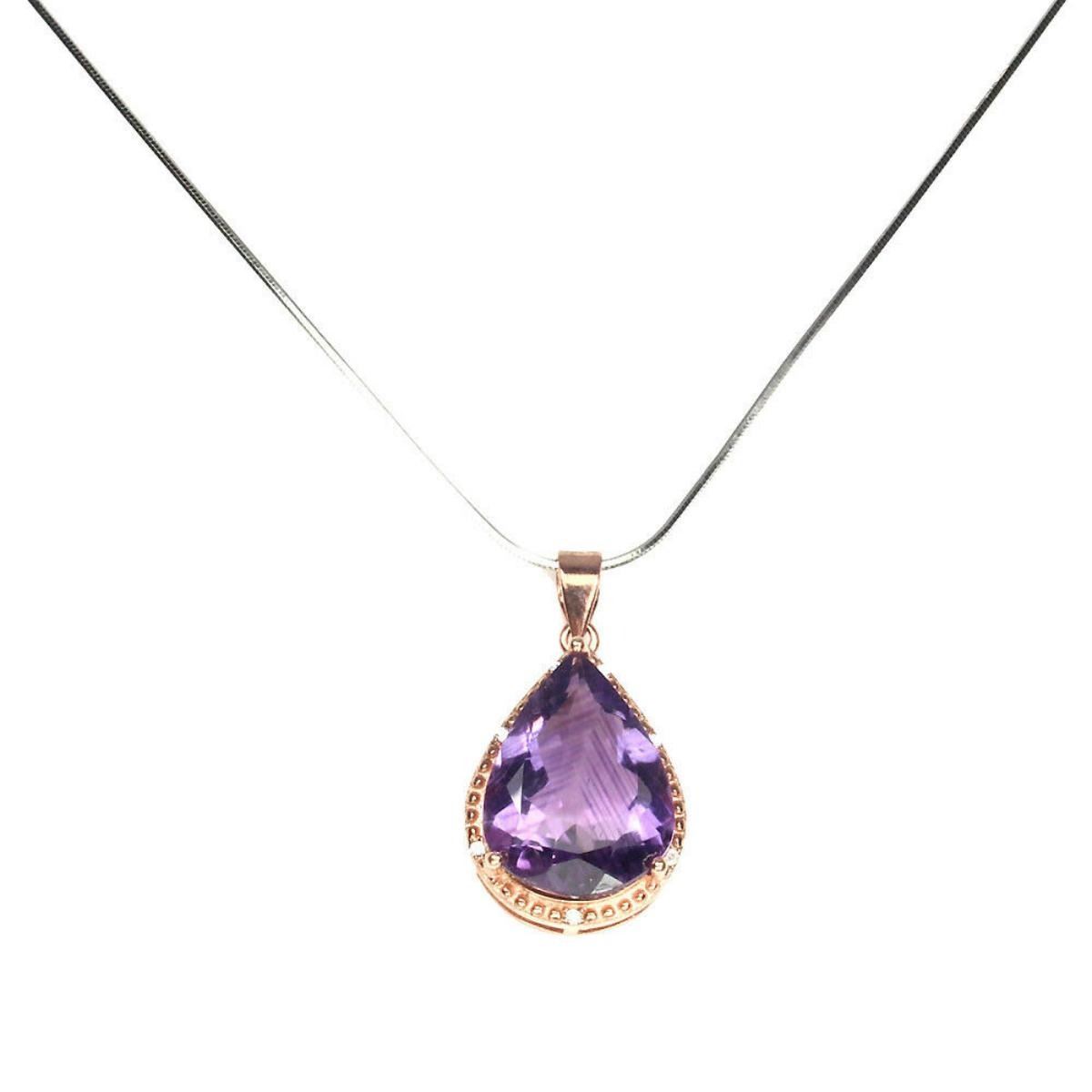 NECKLACE....TYPE OF METAL...925 STERLING SILVER;PLATE....2-TONE WHITE & ROSE 14K GOLD;LENGTH (INCHES)18;MAIN STONE...AMETHYST;OTHER GEMS..CUBIC ZIRCONIA;TOTAL WEIGHT...27.89 CT (TOTAL WEIGHT OF SILVER + STONE)DIMENSION.* STONE 16.0 X 12.0 MM. * CZ 1.0 MM. * STONES PART LENGTH 26.0 X 14.0 MM.;MAIN STONE SHAPE...PEAR CUT;MAIN STONE COLOR...TOP RICH PURPLE;CLARITY/GRADE-IF;TREATMENT-UNHEATED;ORIGIN-BRAZIL;HARDNESS-7