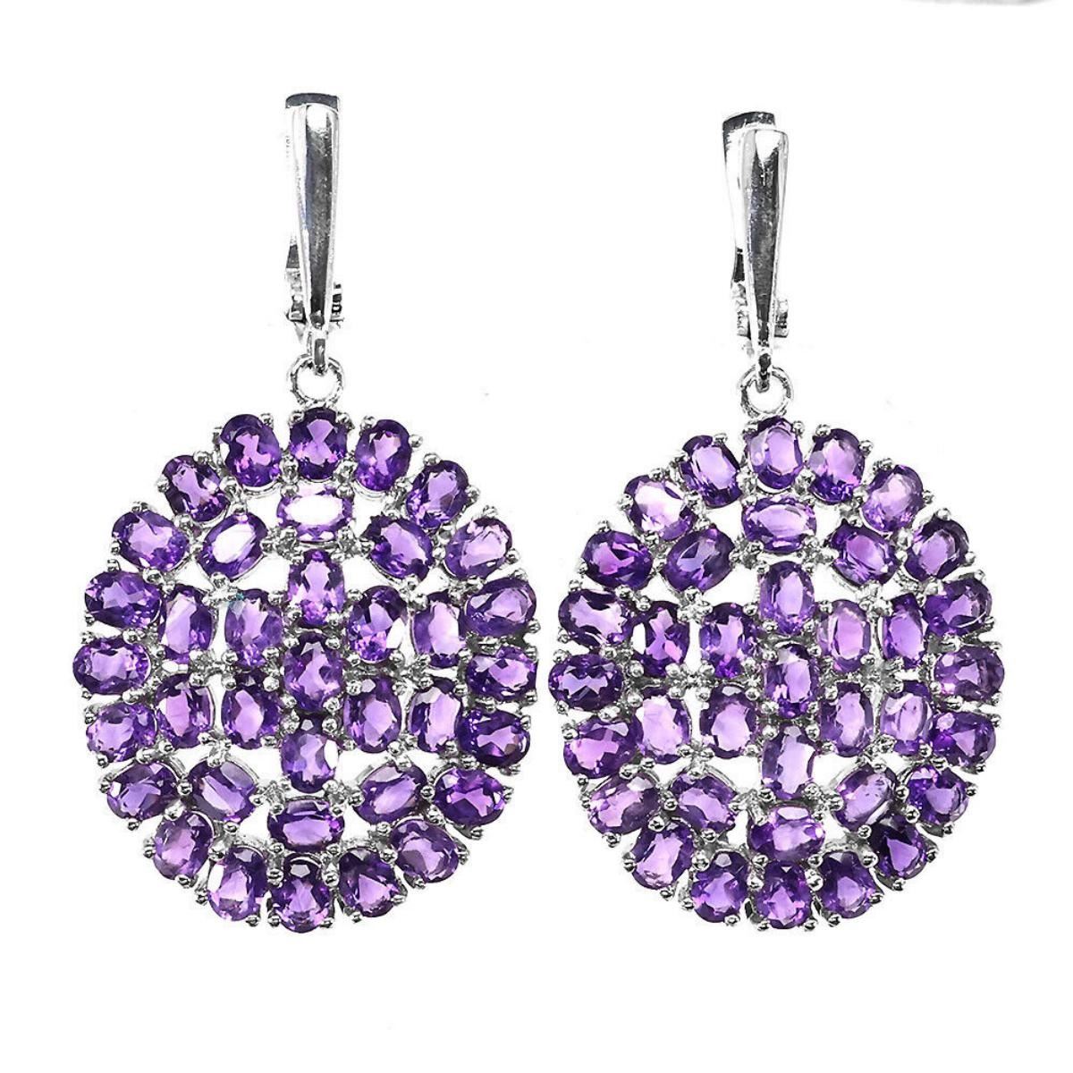 925 STERLING SILVER;PLATE-14K WHITE GOLD;MAIN STONE-AMETHYST;TOTAL WEIGHT-11.66 GRAM (TOTAL WEIGHT OF SILVER + STONE)DIMENSION-* STONE 4.0 X 3.0 MM.;* FACE EARRINGS- 45.0 X 25.0 MM.;MAIN STONE SHAPE--OVAL CUT;MAIN STONE COLOR- RICH PURPLE;CLARITY/GRADE-IF TO VVS;TREATMENT-UNHEATED;ORIGIN-BRAZIL;HARDNESS-7;