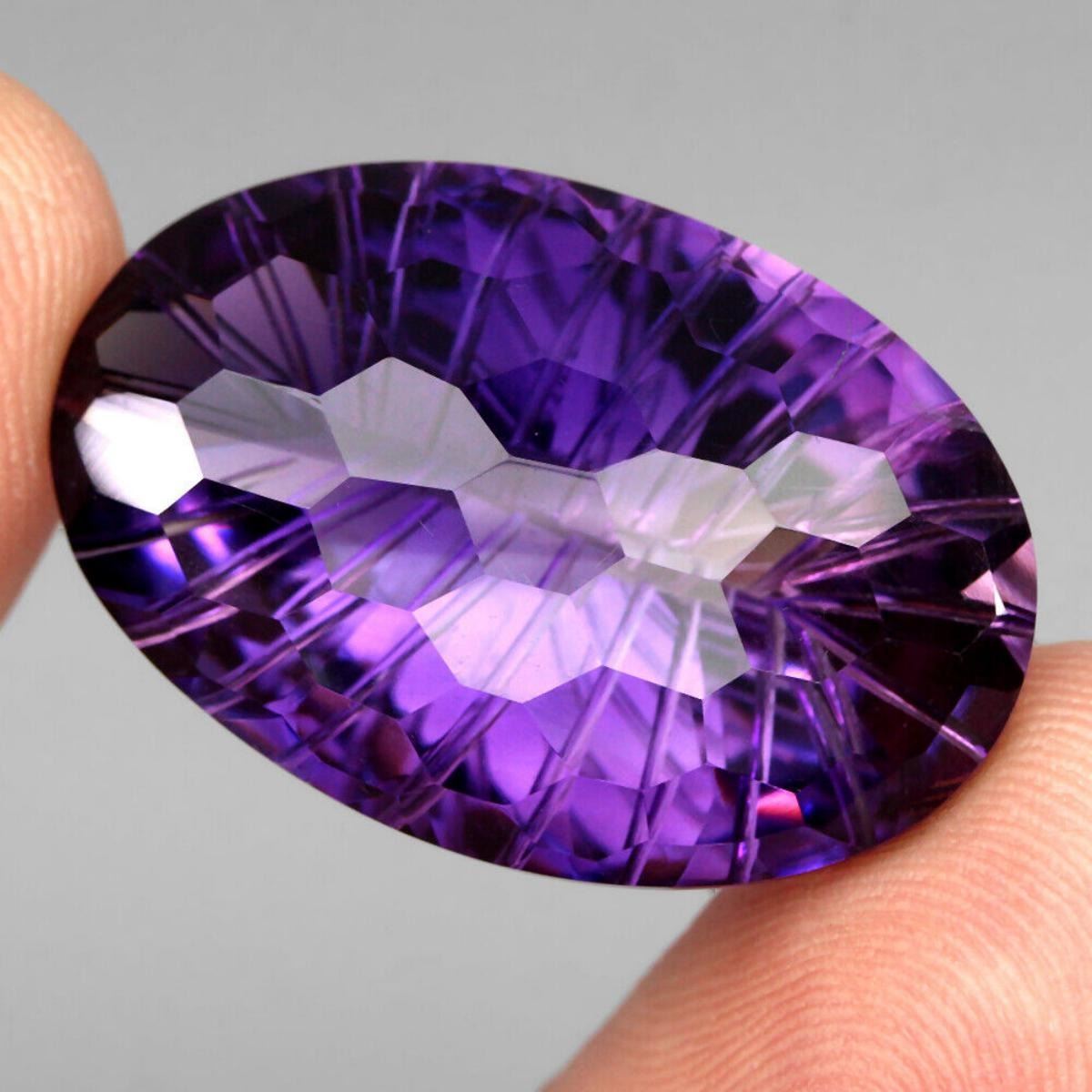 MAIN STONE-AMETHYST;TOTAL WEIGHT-39.74 CT;DIMENSION-29.0 X 19.0 X 13.0 MM.;MAIN STONE SHAPE-OVAL CUT ;MAIN STONE COLOR-PURPLE;CLARITY/GRADE-IF;TREATMENT-UNHEATED;ORIGIN-URUGUAY;