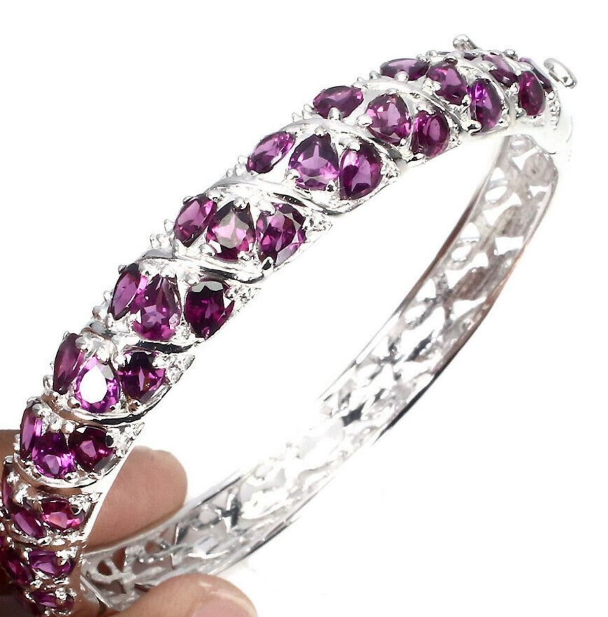 Bangle.............TYPE OF METAL-925 sterling silver;PLATE-14k White Gold;MAIN STONE-Rhodolite Garnet;TOTAL weight-24.92 gram (total weight of silver + stone)DIMENSION-* STONE 5.0 X 4.0 MM. * DIAMETER 2.2 X 2.1 INCHES. * FACE BANGLE- 67.0 X 10.0 MM.;MAIN STONE SHAPE-Pear Cut;MAIN STONE COLOR-Top Rich Pink RaspberryCLARITY/GRADE-If To Vvs;LUSTER-Gorgeous;TREATMENT-Unheated;ORIGIN-Africa;HARDNESS-7;