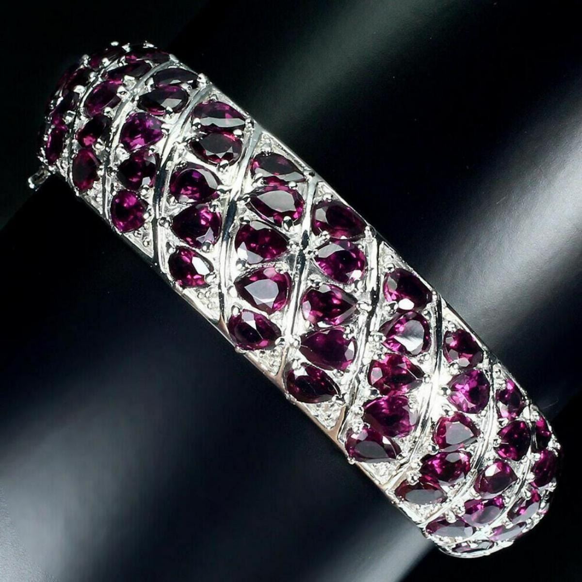 925 STERLING SILVER;PLATE-14K WHITE GOLD;LENGTH -2.2(INCHES);MAIN STONE-RHODOLITE GARNET;TOTAL WEIGHT-40.49 GRAM (TOTAL WEIGHT OF SILVER + STONE)DIMENSION* STONE 3.0 TO 5.0 X 4.0 MM. * DIAMETER 2.2 X 2.0 INCHES. * FACE BANGLE 68.0 X 17.0 MM.;MAIN STONE SHAPE-PEAR CUT;MAIN STONE COLOR-TOP RICH PINK RASPBERRY;CLARITY/GRADE-IF TO VVS;;TREATMENT-UNHEATED;ORIGIN-AFRICA;HARDNESS-7.0 - 7.5;