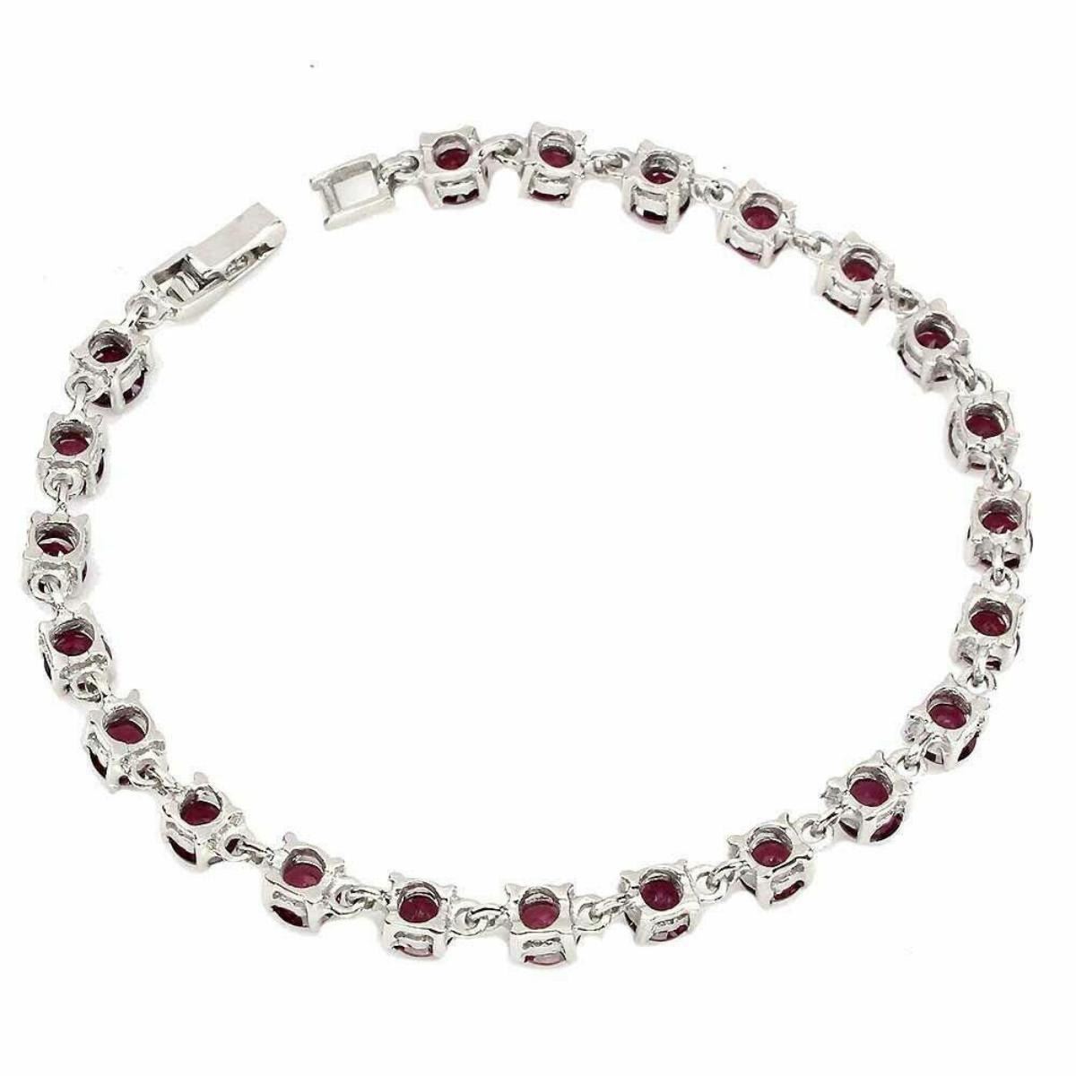 925 STERLING SILVER;PLATE-14K WHITE GOLD;LENGTH (INCHES)-7.5;MAIN STONE-RHODOLITE GARNET;TOTAL WEIGHT-10.52 GRAM (TOTAL WEIGHT OF SILVER + STONE)DIMENSION-* STONE 4.0 MM. * FACE BRACELET 170.0 X 4.0 MM.MAIN STONE SHAPE-ROUND CUT;MAIN STONE COLOR- PINK RASPBERRY;CLARITY/GRADE-IF TO VVS;TREATMENT-UNHEATED;ORIGIN-AFRICA;HARDNESS-7;