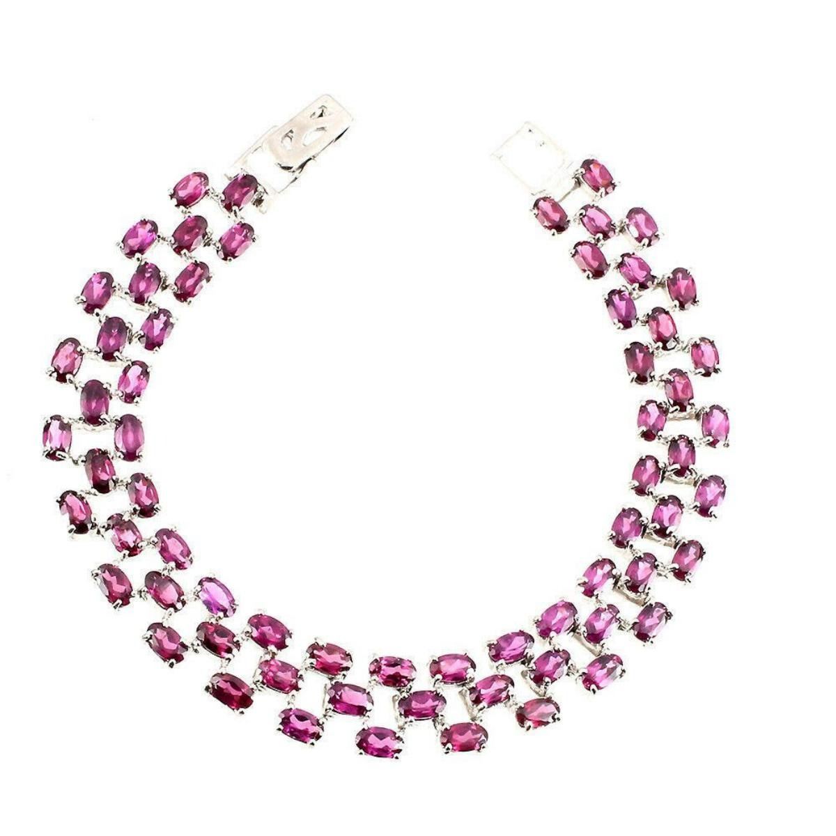 925 STERLING SILVER;PLATE-14K WHITE GOLD;LENGTH (INCHES)7.5;MAIN STONE-RHODOLITE GARNET;TOTAL WEIGHT-20.29 GRAM (TOTAL WEIGHT OF SILVER + STONE)DIMENSION-* STONE 5.0 X 3.0 MM. * TOTAL LENGTH 7.5 INCHES. * FACE BRACELET -170.0 X 10.0 MM.;MAIN STONE SHAPE-OVAL CUT;MAIN STONE COLOR-TOP RICH PINK RASPBERRY;CLARITY/GRADE-IF TO VVS;TREATMENT-UNHEATED;ORIGIN-AFRICA;HARDNESS-7;