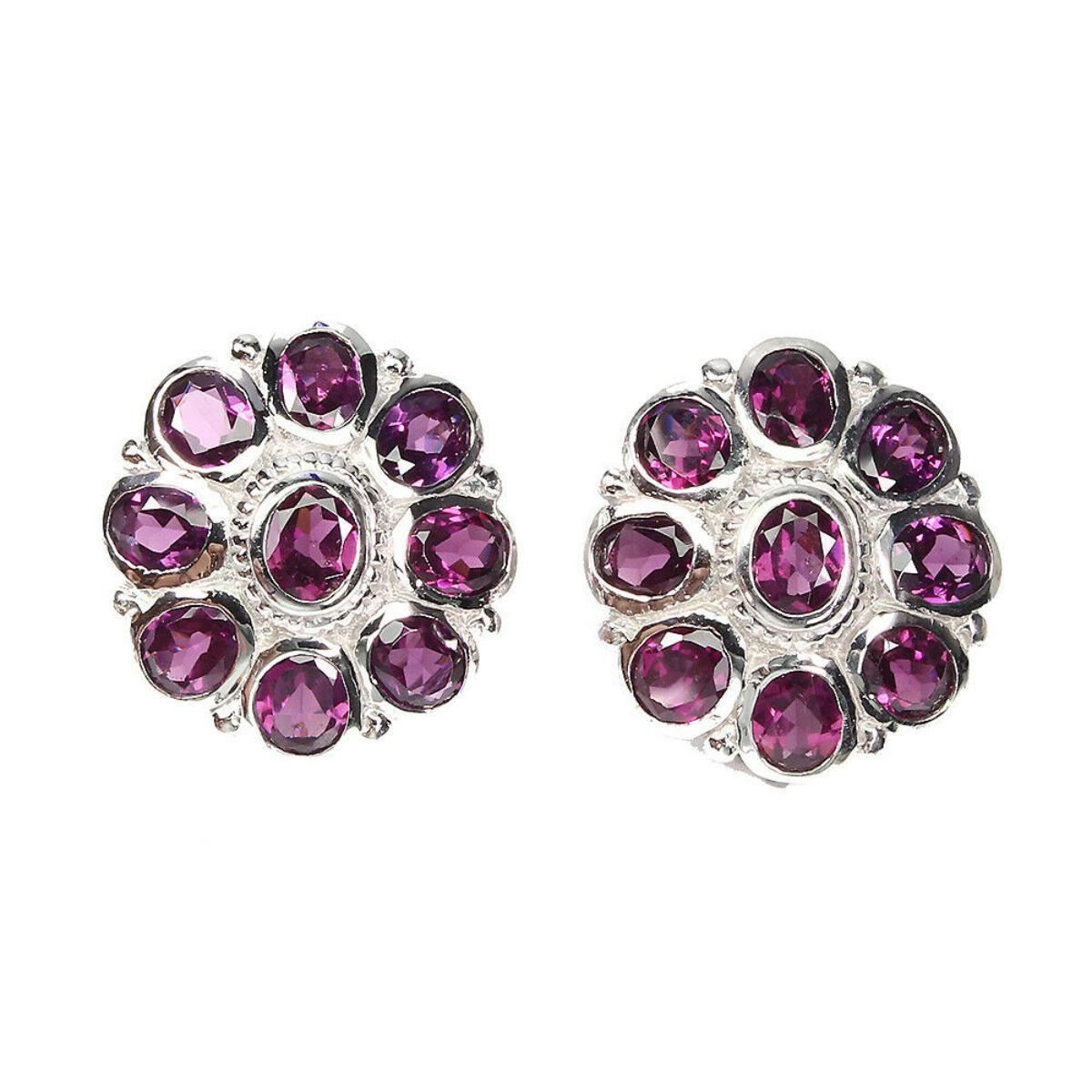 925 STERLING SILVER;PLATE-14K WHITE GOLD;MAIN STONE-RHODOLITE GARNET;TOTAL WEIGHT-10.11 GRAM (TOTAL WEIGHT OF SILVER + STONE)DIMENSION* STONE 5.0 X 4.0 MM. * FACE EARRINGS 20.0 X 18.0 MM.MAIN STONE SHAPE-OVAL CUT;MAIN STONE COLOR-TOP RICH PINK RASPBERRY;CLARITY/GRADE-IF TO VVS;LUSTER-GORGEOUS;TREATMENT-UNHEATED;ORIGIN-AFRICA;HARDNESS-7.0 - 7.5;