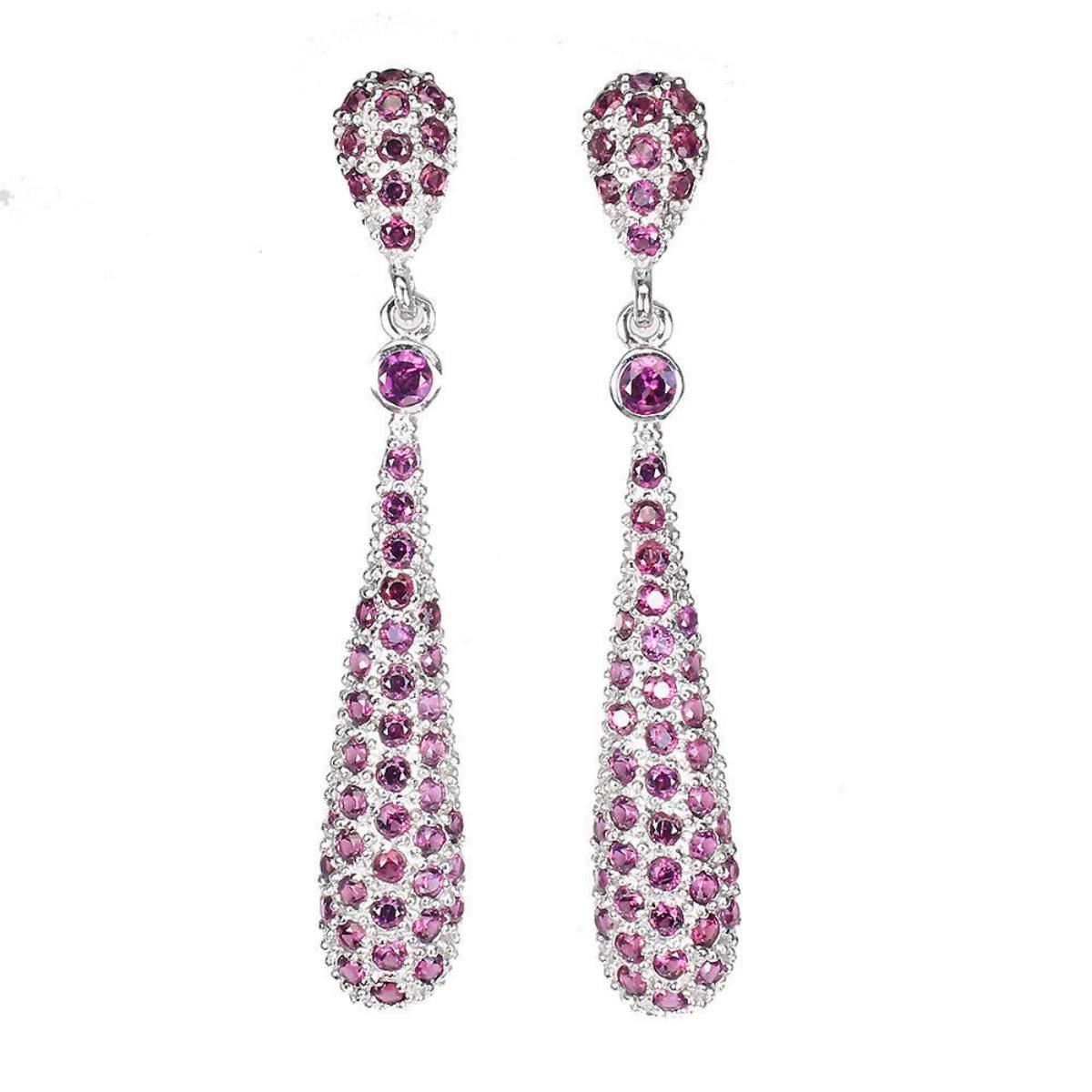 925 STERLING SILVER;PLATE-14K WHITE GOLD;MAIN STONE-RHODOLITE GARNET;TOTAL WEIGHT-9.19 GRAM (TOTAL WEIGHT OF SILVER + STONE)DIMENSION* STONE 2.0 TO 3.5 MM. * FACE EARRINGS 59.0 X 9.0 MM.;MAIN STONE SHAPE-ROUND CUT;MAIN STONE COLOR- PINK RASPBERRY;CLARITY/GRADE-IF TO VVS;TREATMENT-UNHEATED;ORIGIN-AFRICA;HARDNESS-7.0 - 7.5;