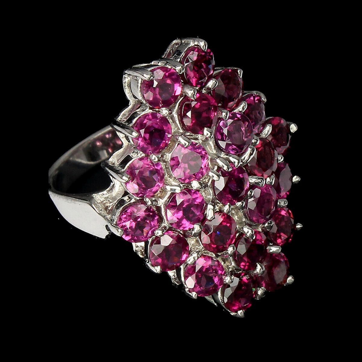 925 STERLING SILVER;PLATE-14K WHITE GOLD;RING SIZE-9(resizeable);MAIN STONE-RHODOLITE GARNET;TOTAL WEIGHT-9.9 GRAM (TOTAL WEIGHT OF SILVER + STONE)DIMENSION-* STONE 4.0 MM. * RING SIZE 9.0 * FACE RING 28.0 X 23.0 MM.MAIN STONE SHAPE-ROUND CUT;MAIN STONE COLOR-TOP RICH PINK RASPBERRY;CLARITY/GRADE-IF TO VVS;TREATMENT-UNHEATED;ORIGIN-AFRICA;HARDNESS-7.0 - 7.5;