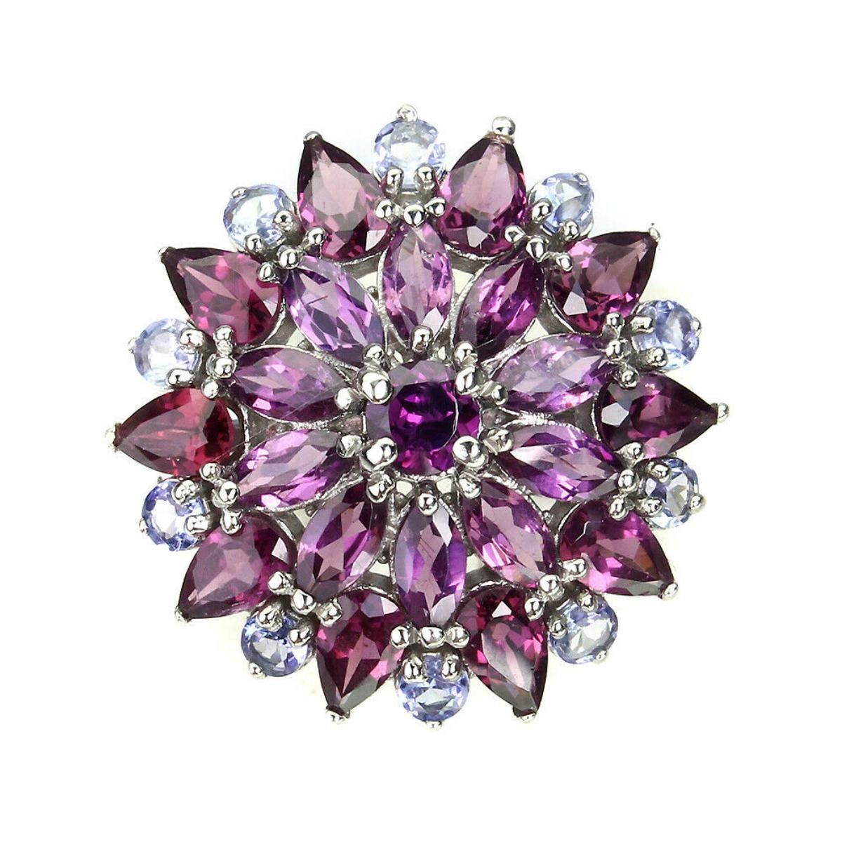 925 STERLING SILVER;PLATE-14K WHITE GOLD;RING SIZE-8 (RESIZABLE);MAIN STONE-RHODOLITE GARNET;OTHER GEMS-TANZANITE;TOTAL WEIGHT-4.64 GRAM (TOTAL WEIGHT OF SILVER + STONE);DIMENSION-* STONE 2.0 TO 5.0 X 3.0 MM. * RING SIZE 8.0 * FACE RING 22.0 X 22.0 MM.;MAIN STONE SHAPE-PEAR CUT;MAIN STONE COLOR-PINK RASPBERRY;CLARITY/GRADE-IF TO VVS;TREATMENT-UNHEATED;ORIGIN-AFRICA;HARDNESS-7.0 - 7.5;