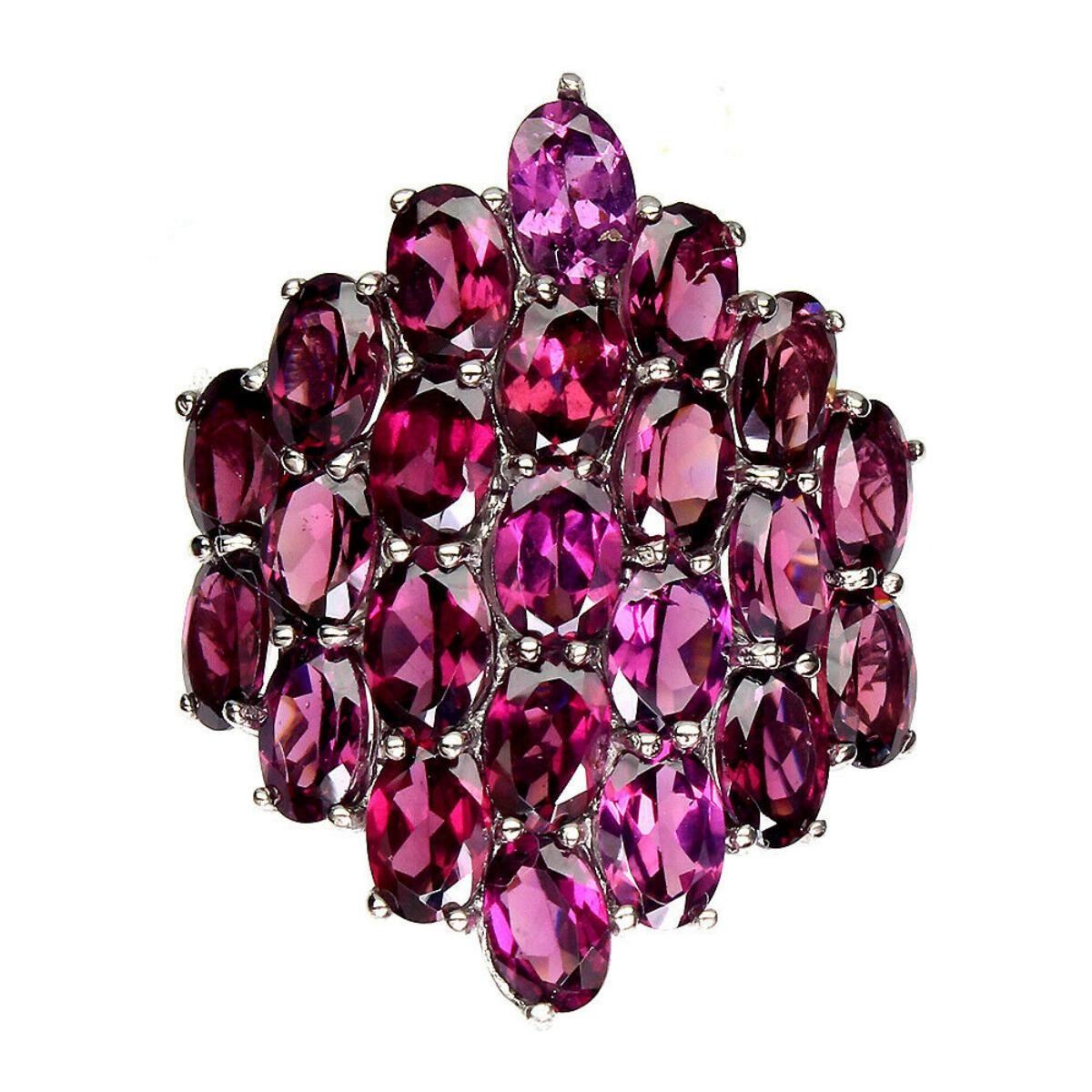 925 STERLING SILVER;PLATE-14K WHITE GOLD;RING SIZE (resizeable)9;MAIN STONE-RHODOLITE GARNET;TOTAL WEIGHT-7.94 GRAM (TOTAL WEIGHT OF SILVER + STONE)DIMENSION-* STONE 6.0 X 4.0 MM. * RING SIZE 9.0 * FACE RING 31.0 X 25.0 MM.;MAIN STONE SHAPE-OVAL CUT;MAIN STONE COLOR-TOP RICH PINK RASPBERRY;TREATMENT-UNHEATED;ORIGIN-AFRICA;HARDNESS-7.0 - 7.5;