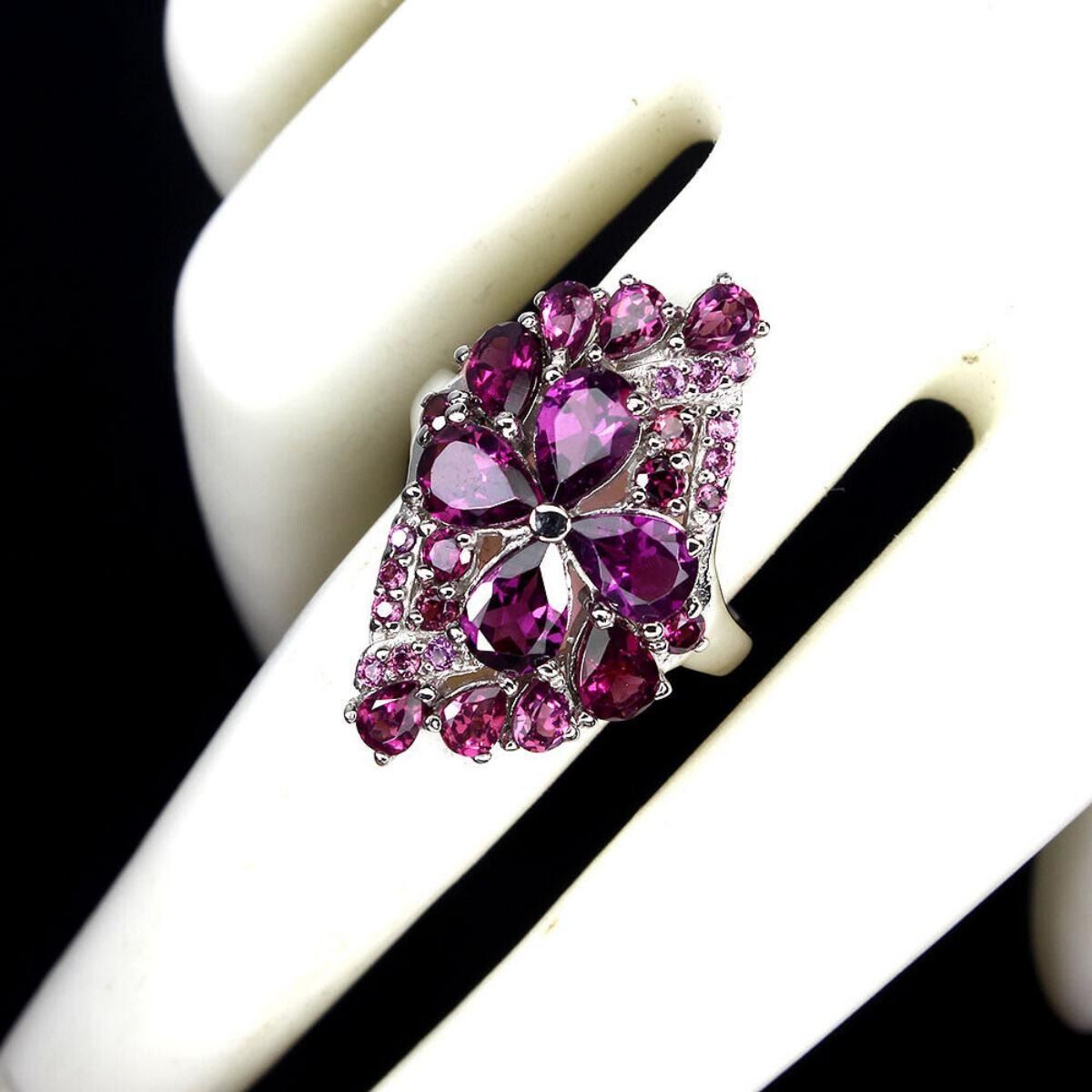 925 STERLING SILVER;PLATE-14K WHITE GOLD;RING SIZE-8(RESIZABLE);MAIN STONE-RHODOLITE GARNET;TOTAL WEIGHT-5.38 GRAM (TOTAL WEIGHT OF SILVER + STONE);DIMENSION-* STONE 1.5 TO 7.0 X 5.0 MM.* RING SIZE 8.* FACE RING 29.0 X 18.0 MM.;MAIN STONE SHAPE-PEAR CUT;MAIN STONE COLOR-PINK RASPBERRY;CLARITY/GRADE-IF;TREATMENT-UNHEATED;ORIGIN-AFRICA;HARDNESS-7.0 - 7.5;
