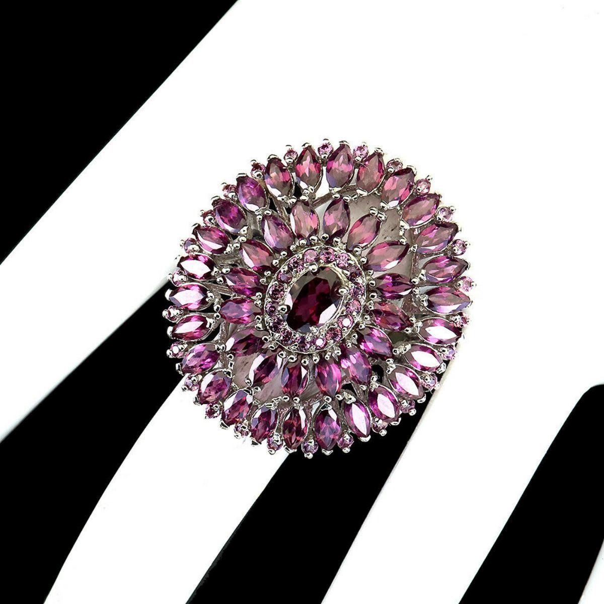 925 STERLING SILVER;PLATE14K WHITE GOLD;RING SIZE/resizeable-8;MAIN STONE-RHODOLITE GARNET;TOTAL WEIGHT-8.09 GRAM (TOTAL WEIGHT OF SILVER + STONE)DIMENSION-* STONE 1.5 TO 7.0 X 5.0 MM.;* RING SIZE- 8.0* FACE RING- 33.0 X 30.0 MM.;MAIN STONE SHAPE-OVAL CUT;MAIN STONE COLOR- PINK RASPBERRY;CLARITY/GRADE-IF;TREATMENT-UNHEATED;ORIGIN-AFRICA;