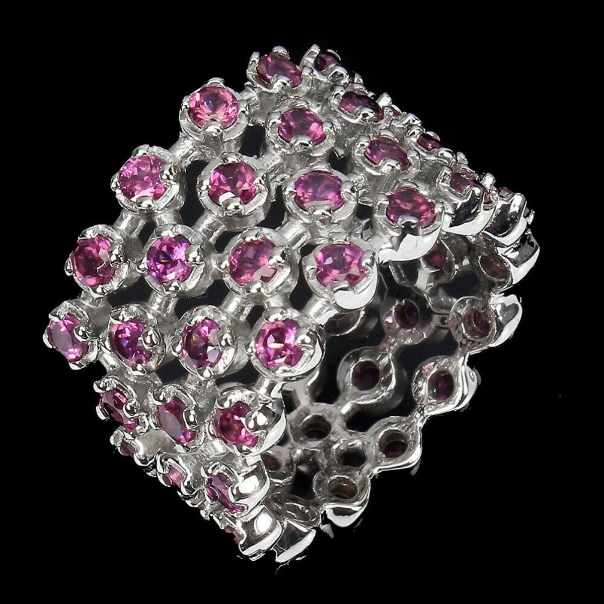 925 STERLING SILVER;PLATE-14K WHITE GOLD;RING SIZE(INCHES)-7(RESIZABLE);MAIN STONE-RHODOLITE GARNET;TOTAL WEIGHT-9.12 GRAM (TOTAL WEIGHT OF SILVER + STONE);DIMENSION-* STONE 2.5 MM. * RING SIZE 7.0 * FACE RING 23.0 X 14.0 MM.;MAIN STONE SHAPE-ROUND CUT;MAIN STONE COLOR-PINK RASPBERRY;CLARITY/GRADE-IF TO VVS;TREATMENT-UNHEATED;ORIGIN-AFRICA;HARDNESS-7;