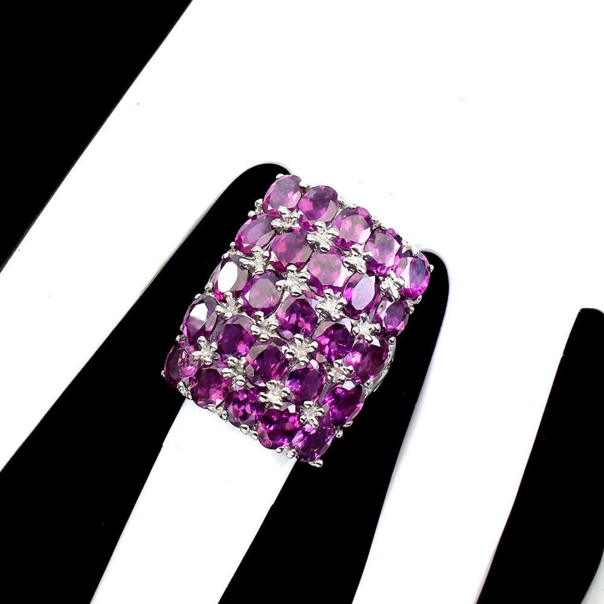 925 STERLING SILVER;PLATE14K WHITE GOLD;RING SIZE/Resizeable-7MAIN STONE-RHODOLITE GARNET;TOTAL WEIGHT-10.38 GRAM (TOTAL WEIGHT OF SILVER + STONE)DIMENSION-* STONE 5.0 X 4.0 MM.* FACE RING -26.0 X 19.0 MM.;MAIN STONE SHAPE-OVAL CUT;MAIN STONE COLOR--PINK RASPBERRY;CLARITY/GRADE-IF TO VVS;TREATMENT-UNHEATED;ORIGIN-AFRICA;HARDNESS-7.0 - 7.5;