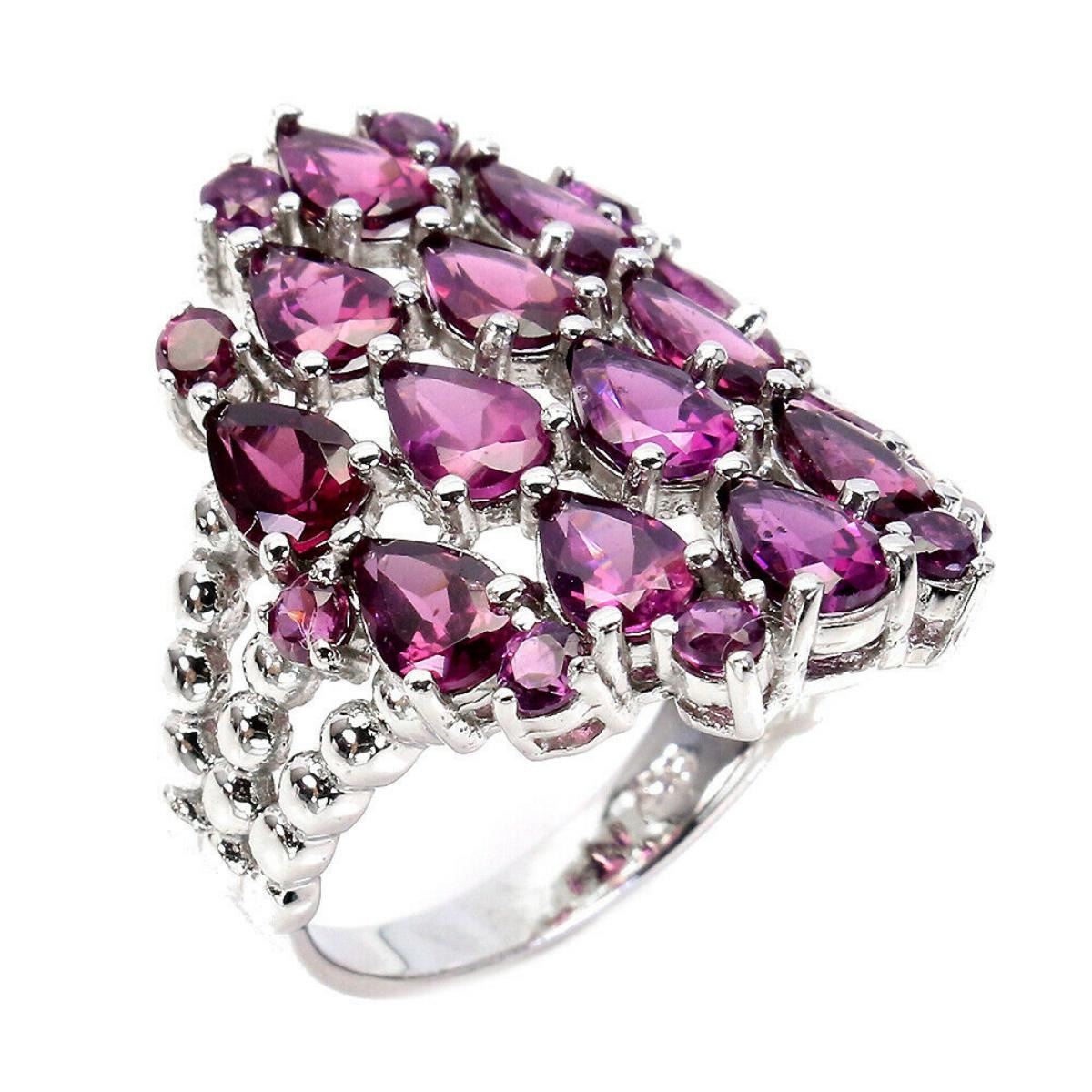 925 STERLING SILVER;PLATE-14K WHITE GOLD;RING SIZE-8(RESIZABLE);MAIN STONE-RHODOLITE GARNET;TOTAL WEIGHT-8.08 GRAM (TOTAL WEIGHT OF SILVER + STONE);DIMENSION-* STONE 2.0 TO 5.0 X 3.5 MM. * RING SIZE 8.0 * FACE RING 28.0 X 21.0 MM.;MAIN STONE SHAPE-PEAR CUT;MAIN STONE COLOR-PINK RASPBERRY;CLARITY/GRADE-IF;TREATMENT-UNHEATED;ORIGIN-AFRICA;HARDNESS-7;