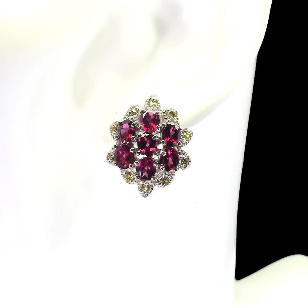 925 STERLING SILVER;PLATE-14K WHITE GOLD;MAIN STONE-RHODOLITE GARNET;OTHER GEMS-SAPPHIRE;TOTAL WEIGHT-9.1 GRAM (TOTAL WEIGHT OF SILVER + STONE);DIMENSION-* STONE 2.0 TO 5.0 X 4.0 MM.* FACE EARRINGS 21.0 X 17.0 MM.;MAIN STONE SHAPE-OVAL CUT;MAIN STONE COLOR-PINK RASPBERRY;CLARITY/GRADE-IF;TREATMENT-UNHEATED;ORIGIN-AFRICA;HARDNESS-7.0 - 7.5;
