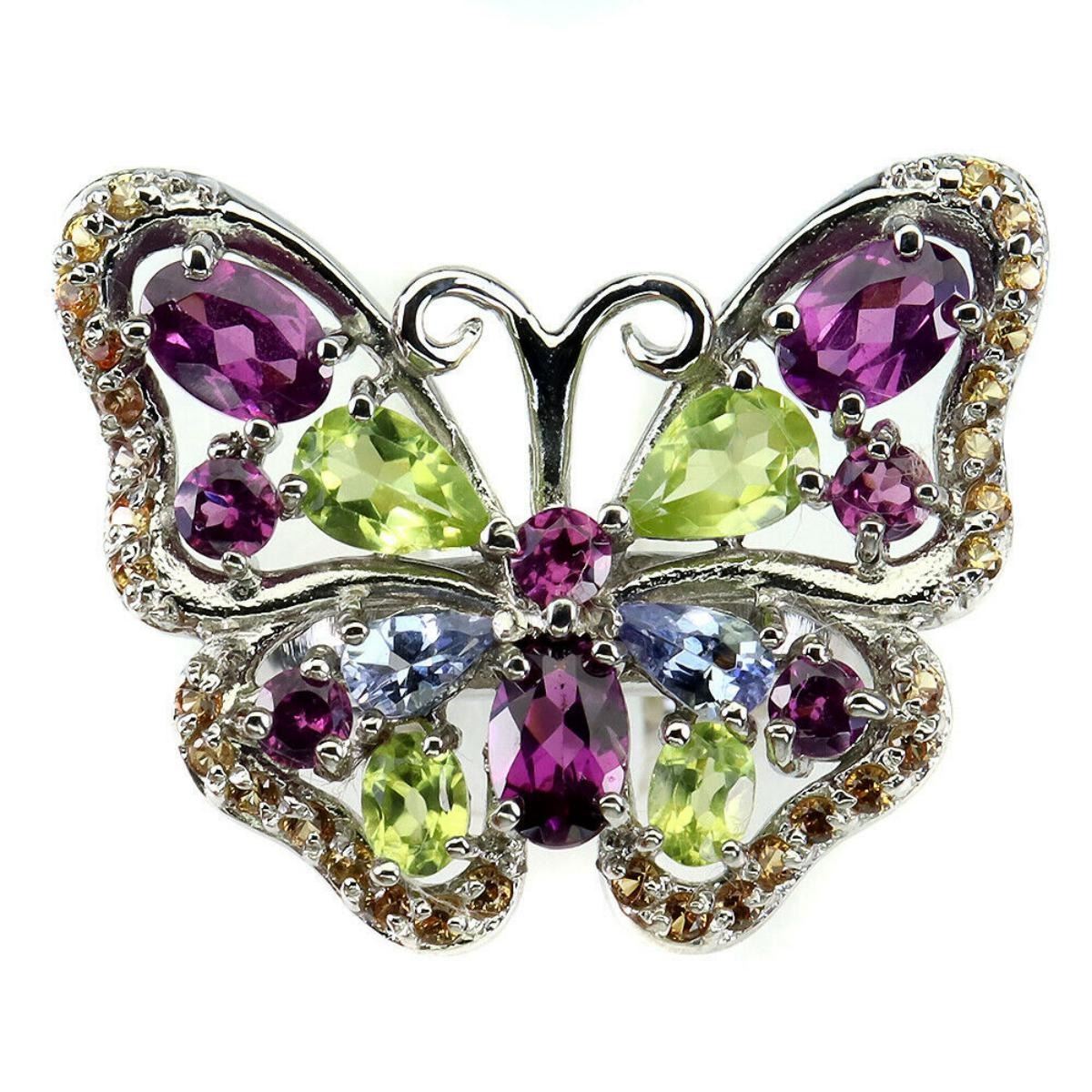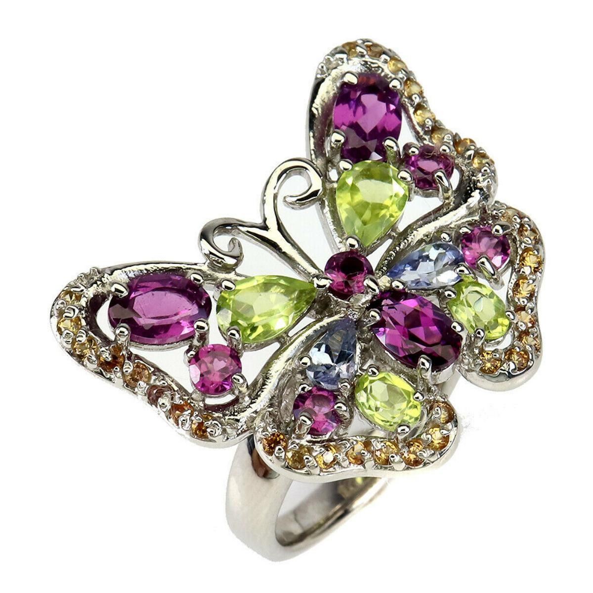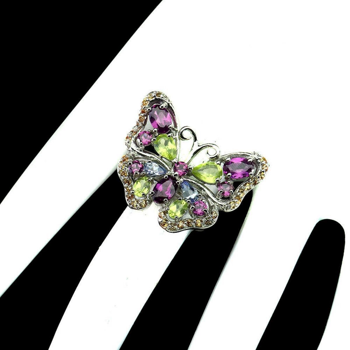 925 STERLING SILVER;PLATE-14K WHITE GOLD;RING SIZE (INCHES)-7(RESIZABLE);MAIN STONE-RHODOLITE GARNET;OTHER GEMS-PERIDOT, TANZANITE, SAPPHIRE DIAMOND CUT;TOTAL WEIGHT-7.85 GRAM (TOTAL WEIGHT OF SILVER + STONE);DIMENSION-* STONE 1.5 TO 6.0 X 4.0 MM. * RING SIZE 7.0 * FACE RING 28.0 X 23.0 MM.;MAIN STONE SHAPE-OVAL CUT, ROUND CUT;MAIN STONE COLOR-PINK RASPBERRY;CLARITY/GRADE-IF;TREATMENT-UNHEATED;ORIGIN-AFRICA;HARDNESS-7;