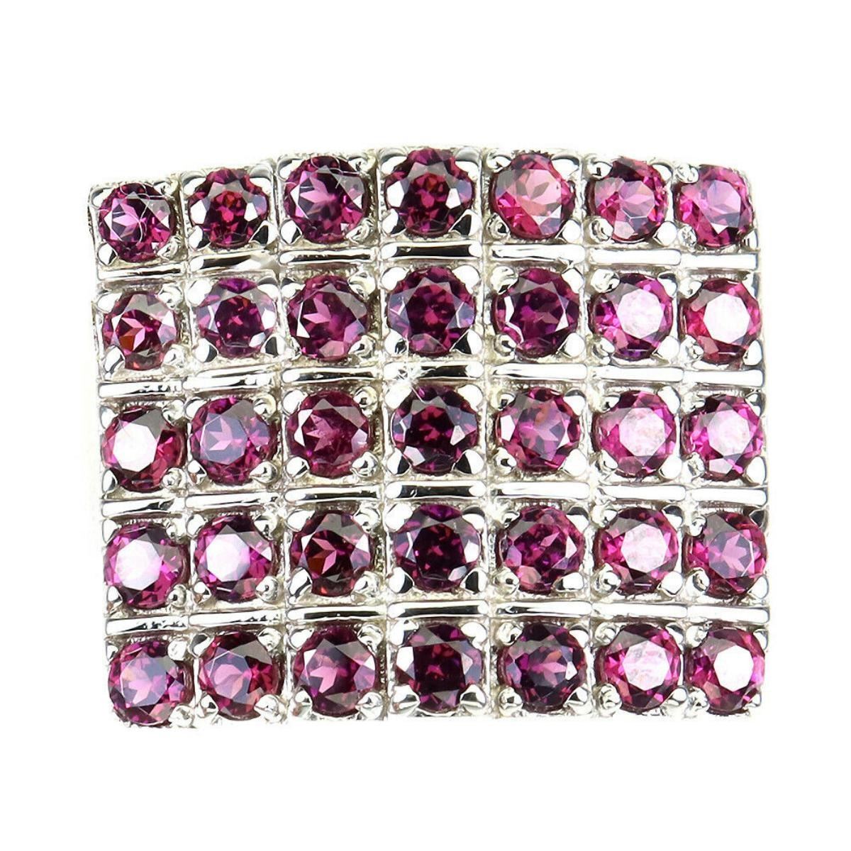925 STERLING SILVER;PLATE-14K WHITE GOLD;RING SIZE-8.5(RESIZABLE);MAIN STONE-RHODOLITE GARNET;TOTAL WEIGHT-7.77 GRAM (TOTAL WEIGHT OF SILVER + STONE);DIMENSION -* STONE 2.5 MM * RING SIZE 8.5 FACE RING 20.0 X 17.0 MM.;MAIN STONE SHAPE-ROUND CUT;MAIN STONE COLOR- PINK RASPBERRY;CLARITY/GRADE-IF;TREATMENT-UNHEATED;ORIGIN-AFRICA;HARDNESS-7.0 - 7.5;
