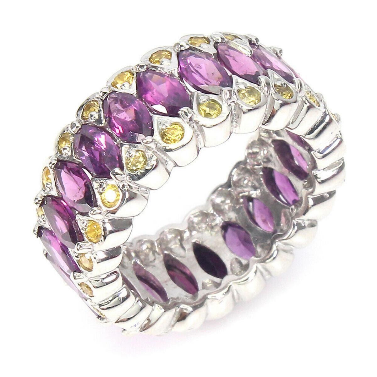 925 STERLING SILVER;PLATE-14K WHITE GOLD;RING SIZE(INCHES)-7.5;MAIN STONE-RHODOLITE GARNET;OTHER GEMS-SAPPHIRE;TOTAL WEIGHT-10.23 GRAM (TOTAL WEIGHT OF SILVER + STONE);DIMENSION-* STONE 2.0 TO 6.0 X 3.0 MM. * RING SIZE 7.5 * FACE RING 25.0 X 10.0 MM.;MAIN STONE SHAPE-MARQUISE CUT;MAIN STONE COLOR-PINK RASPBERRY;CLARITY/GRADE-IF TO VVS;TREATMENT-UNHEATED;ORIGIN-AFRICA;HARDNESS-7;
