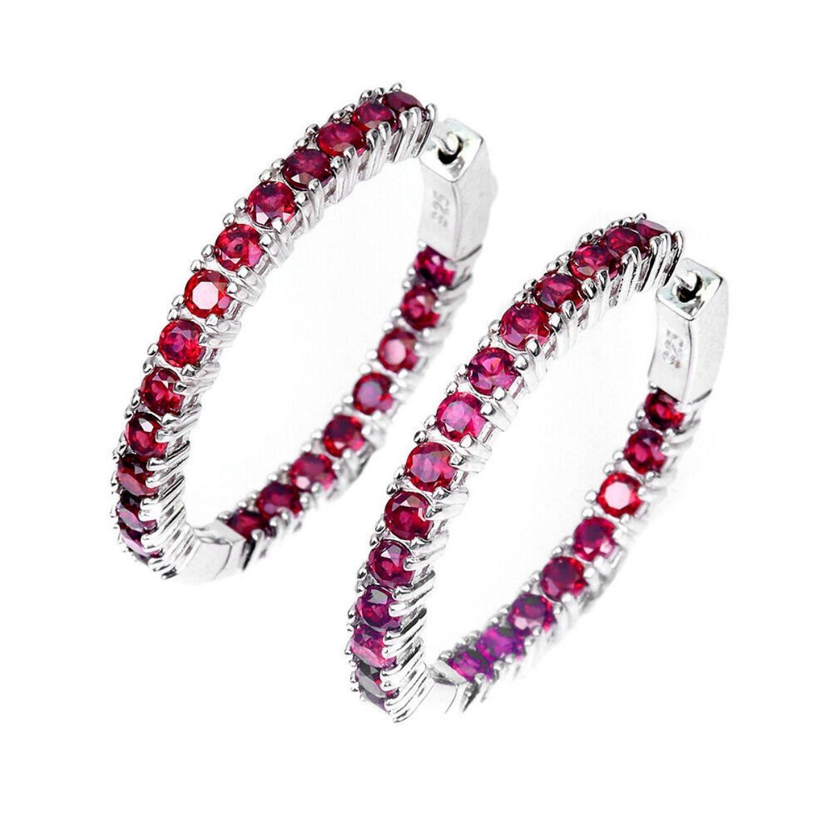 925 STERLING SILVER; PLATE- 14K WHITE GOLD; MAIN STONE- RHODOLITE GARNET; TOTAL WEIGHT- 7.88 GRAM (TOTAL WEIGHT OF SILVER + STONE) DIMENSION * STONE 2.5 MM. * FACE EARRINGS 29.0 X 3.0 MM.; MAIN STONE SHAPE- ROUND CUT; MAIN STONE COLOR - PINK RASPBERRY; CLARITY/GRADE- IF TO VVS; TREATMENT- UNHEATED; ORIGIN- AFRICA; HARDNESS- 7.0 - 7.5;