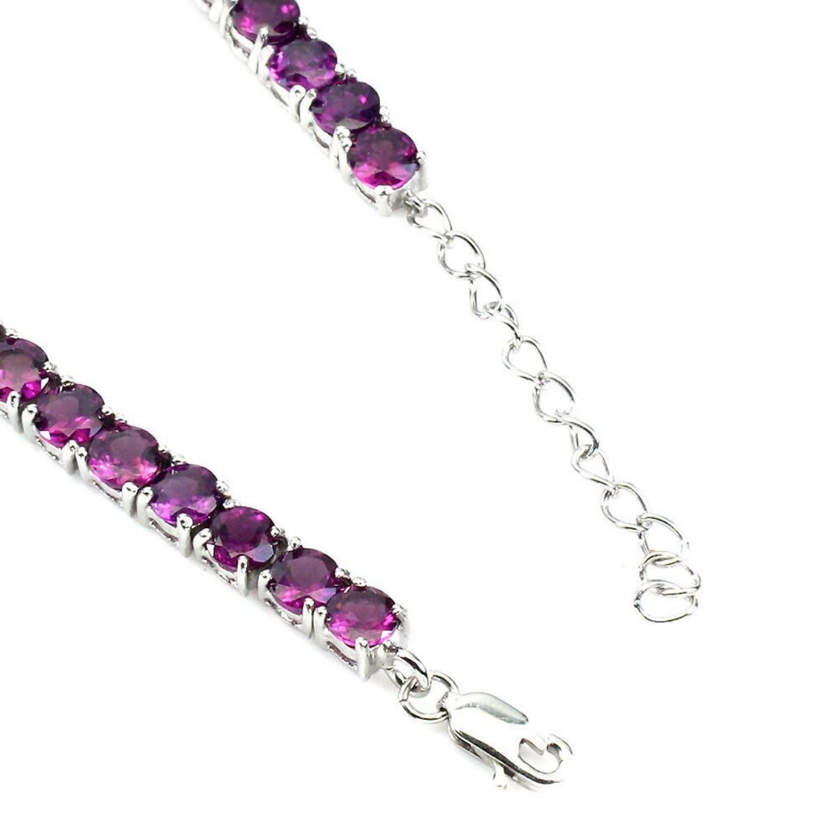 925 STERLING SILVER;PLATE-14K WHITE GOLD;LENGTH (INCHES)7.5;MAIN STONE-RHODOLITE GARNET;TOTAL WEIGHT-15.13 GRAM (TOTAL WEIGHT OF SILVER + STONE)DIMENSION-* STONE 5.0 MM.;* TOTAL LENGTH- 7.5 INCHES.;* FACE BRACELET- 170.0 X 5.0 MM.;MAIN STONE SHAPE-ROUND CUT;MAIN STONE COLOR- PINK RASPBERRY;CLARITY/GRADE-IF TO VVS;TREATMENT-UNHEATED;ORIGIN-AFRICA;HARDNESS-7.0 - 7.5;