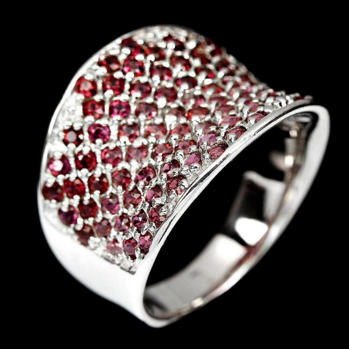 925 STERLING SILVER;PLATE-14K WHITE GOLD;RING SIZE-8(resizeable)MAIN STONE-RHODOLITE GARNET;TOTAL WEIGHT-8.69 GRAM (TOTAL WEIGHT OF SILVER + STONE)DIMENSION* STONE 2.0 MM. * FACE RING 22.0 X 16.0 MM.;MAIN STONE SHAPE-ROUND CUT;MAIN STONE COLOR-TOP RICH PINK RASPBERRY;CLARITY/GRADE-IF TO VVS;TREATMENT-UNHEATED;ORIGIN-AFRICA;HARDNESS-7.0 - 7.5;