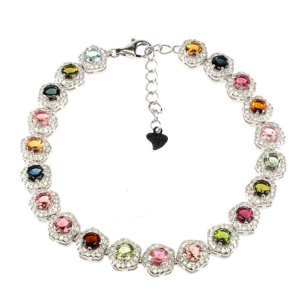 925 STERLING SILVER;PLATE-14K WHITE GOLD;LENGTH (INCHES)7;MAIN STONE-TOURMALINE;TOTAL WEIGHT-11.57 GRAM (TOTAL WEIGHT OF SILVER + STONE)DIMENSION-* STONE 4.0 MM. * CZ 1.0 MM. * TOTAL LENGTH 7.0 INCHES. * FACE BRACELET- 160.0 X 7.0 MM.;MAIN STONE SHAPE-ROUND CUT;MAIN STONE COLOR-MULTI-COLOR;CLARITY/GRADE-IF TO VVS;TREATMENT-UNHEATED;ORIGIN-BRAZIL;HARDNESS-7.0-7.5;