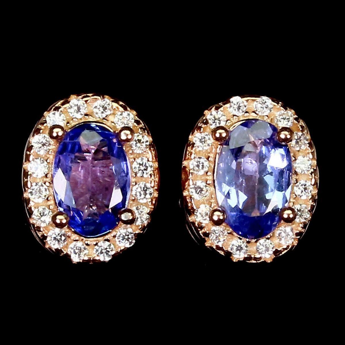 925 STERLING SILVER;PLATE-14K ROSE GOLD;MAIN STONE-TANZANITE;TOTAL WEIGHT-2.18 GRAM (TOTAL WEIGHT OF SILVER + STONE);DIMENSION-* STONE 6.0 X 4.0 MM. * CZ 1.0 MM.* FACE EARRINGS 9.0 X 7.0 MM.;MAIN STONE SHAPE-OVAL CUT;MAIN STONE COLOR- BLUE VIOLET;CLARITY/GRADE-IF TO VVS;TREATMENT-UNHEATED;ORIGIN-TANZANIA - AFRICA;HARDNESS-7.0 - 7.5;