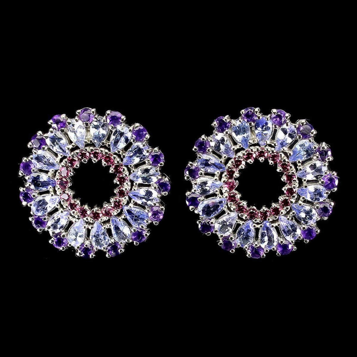 925 STERLING SILVER;PLATE-14K WHITE GOLD;MAIN STONE-TANZANITE;OTHER GEMS-AMETHYST, RHODOLITE GARNET;TOTAL WEIGHT-9.48 GRAM (TOTAL WEIGHT OF SILVER + STONE);DIMENSION-* STONE 2.0 TO 5.0 X 3.0 MM. * FACE EARRINGS 25.0 X 25.0 MM.;MAIN STONE SHAPE-PEAR CUT;MAIN STONE COLOR- BLUE VIOLET;CLARITY/GRADE-IF TO VVS;TREATMENT-UNHEATED;ORIGIN-TANZANIA - AFRICA;HARDNESS-7;