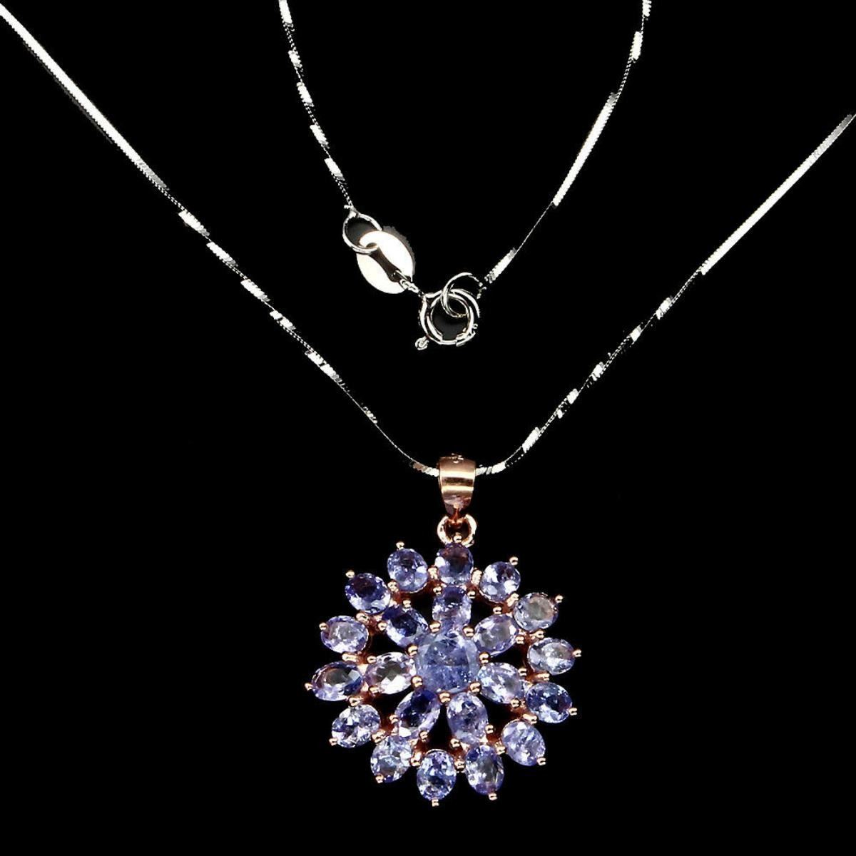 925 STERLING SILVER;PLATE2-TONE WHITE & ROSE 14K GOLD; LENGTH (INCHES)16;MAIN STONE-TANZANITE;TOTAL WEIGHT-4.88 CT (TOTAL WEIGHT OF SILVER + STONE)DIMENSION* STONE 4.0 X 3.0 TO 5.0 MM. * STONES PART LENGTH 28.0 X 21.0 MM.;MAIN STONE SHAPE-ROUND CUT;MAIN STONE COLOR-TOP NICE BLUE VIOLET;TREATMENT-UNHEATED;ORIGIN-TANZANIA - AFRICA;HARDNESS-7.0 - 7.5;
