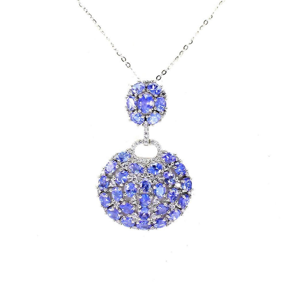 925 STERLING SILVER;PLATE-14K WHITE GOLD;LENGTH (INCHES)-18;MAIN STONE-TANZANITE;TOTAL WEIGHT-8.34 GRAM (TOTAL WEIGHT OF SILVER + STONE);DIMENSION-* STONE 4.0 X 3.0 TO 5.0 X 4.0 MM.* TOTAL LENGTH 18.0 INCHES.* STONES PART LENGTH 42.0 X 26.0 MM.;MAIN STONE SHAPE-OVAL CUT;MAIN STONE COLOR- BLUE VIOLET;TREATMENT-UNHEATED;ORIGIN-TANZANIA - AFRICA;HARDNESS-7.0 - 7.5;