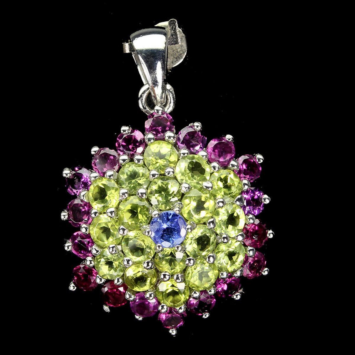 925 STERLING SILVER;PLATE-14K WHITE GOLD;MAIN STONE-TANZANITE;OTHER GEMS-PERIDOT, RHODOLITE GARNET;TOTAL WEIGHT-8.78 GRAM (TOTAL WEIGHT OF SILVER + STONE);DIMENSION- * STONE 3.0 TO 4.0 MM.* FACE EARRINGS 37.0 X 25.0 MM.;MAIN STONE SHAPE-ROUND CUT;MAIN STONE COLOR-BLUE VIOLET;TREATMENT-UNHEATED;ORIGIN-TANZANIA - AFRICA;