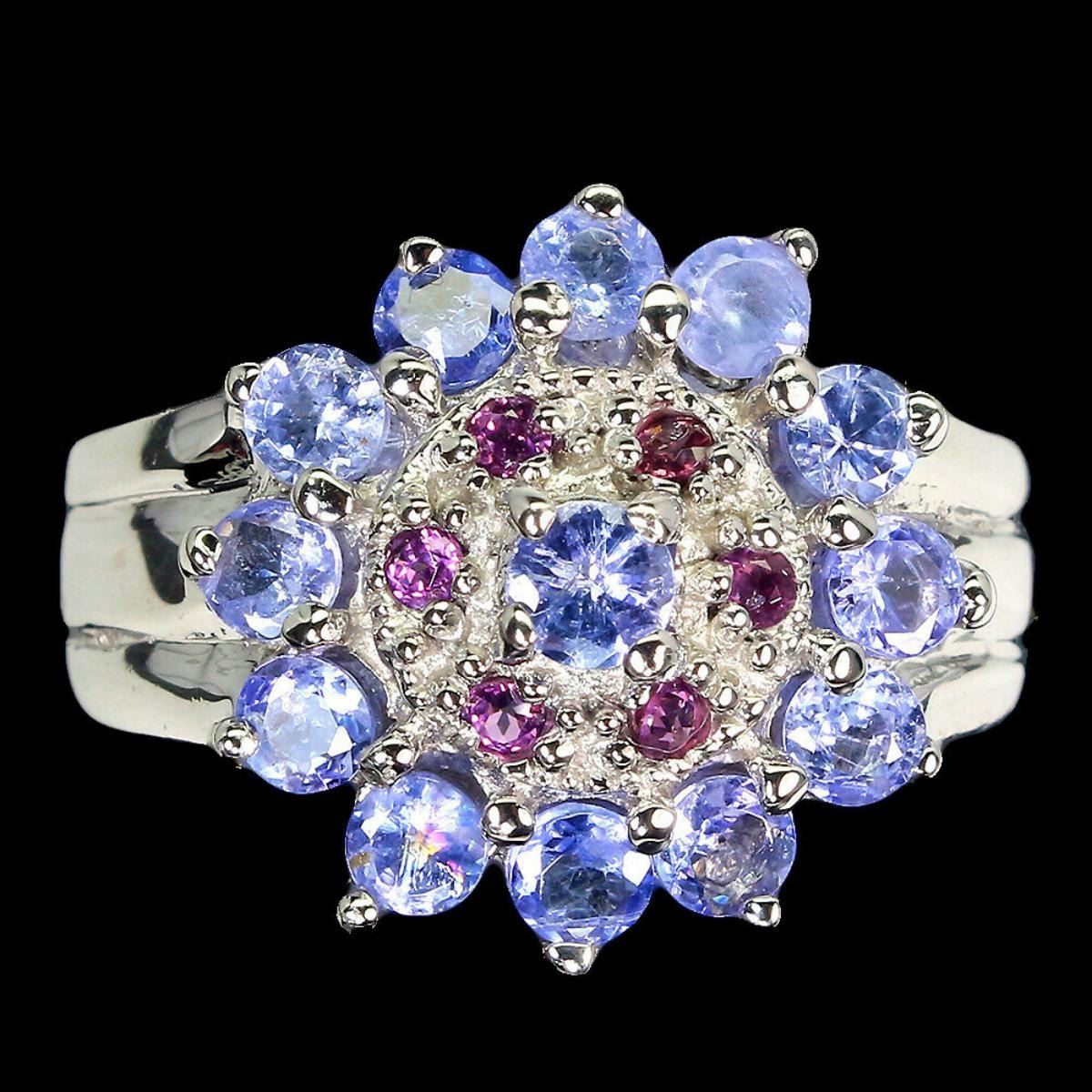 925 STERLING SILVER;PLATE-14K WHITE GOLD;RING SIZE-8(RESIZABLE);MAIN STONE-TANZANITE;OTHER GEMS-RHODOLITE GARNET;TOTAL WEIGHT-9.91 GRAM (TOTAL WEIGHT OF SILVER + STONE);DIMENSION-* STONE 2.0 TO 3.5 MM. * RING SIZE 8.0 * FACE RING 17.0 X 17.0 MM.;MAIN STONE SHAPE-ROUND CUT;MAIN STONE COLOR- BLUE VIOLET;CLARITY/GRADE-IF TO VVS;TREATMENT-UNHEATED;ORIGIN-TANZANIA - AFRICA;HARDNESS-7;