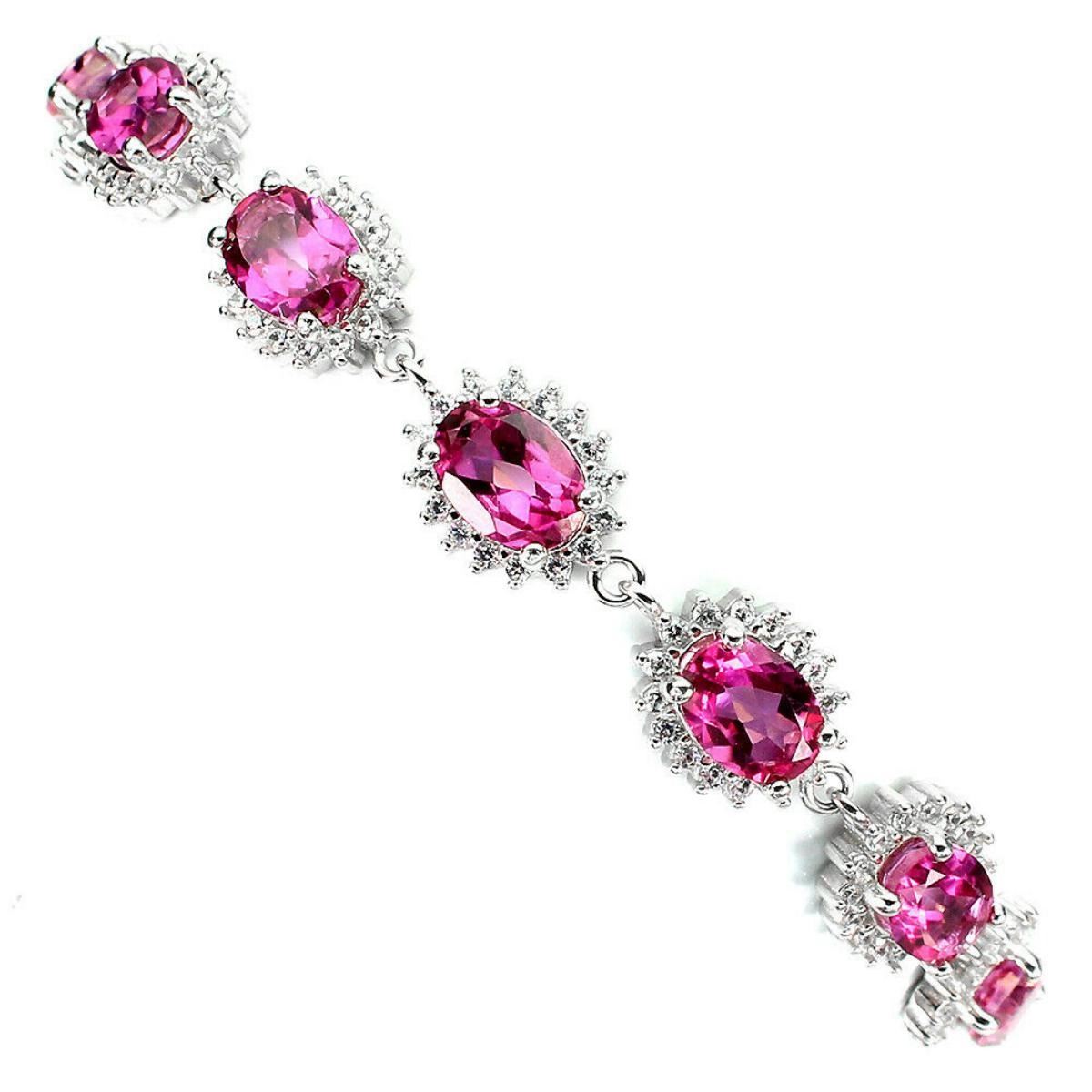 925 STERLING SILVER;PLATE-14K WHITE GOLD;LENGTH (INCHES)-7;MAIN STONE-PINK TOPAZ;TOTAL WEIGHT-13.48 GRAM (TOTAL WEIGHT OF SILVER + STONE);DIMENSION-* STONE 7.0 X 5.0 MM.* LENGTH 7.0 INCHES.* FACE BRACELET 155.0 X 8.0 MM.;MAIN STONE SHAPE-OVAL CUT;MAIN STONE COLOR-PINK;CLARITY/GRADE-IF;TREATMENT-HEATED ;ORIGIN-BRAZIL;HARDNESS-8.0;