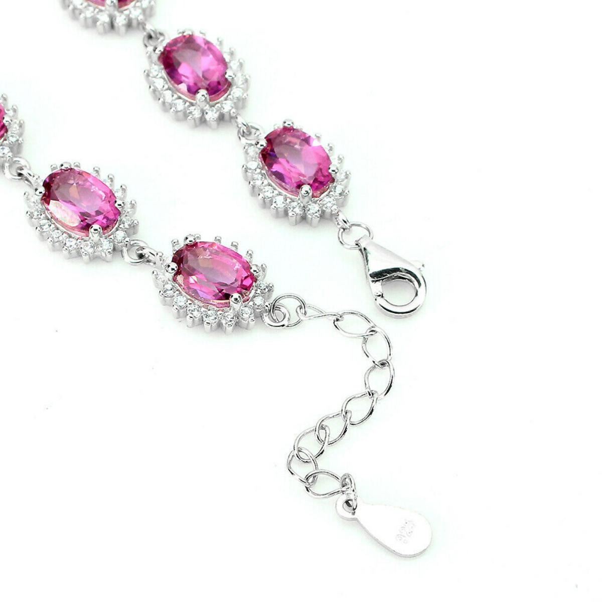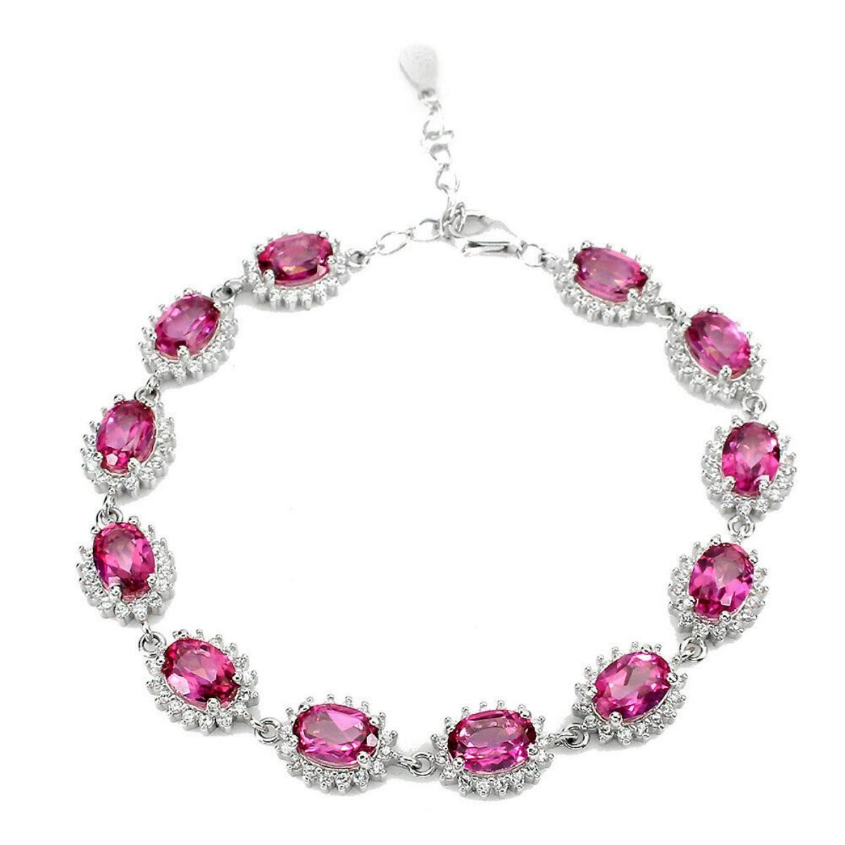 925 STERLING SILVER;PLATE-14K WHITE GOLD;LENGTH (INCHES)-7;MAIN STONE-PINK TOPAZ;TOTAL WEIGHT-13.48 GRAM (TOTAL WEIGHT OF SILVER + STONE);DIMENSION-* STONE 7.0 X 5.0 MM.* LENGTH 7.0 INCHES.* FACE BRACELET 155.0 X 8.0 MM.;MAIN STONE SHAPE-OVAL CUT;MAIN STONE COLOR-PINK;CLARITY/GRADE-IF;TREATMENT-HEATED ;ORIGIN-BRAZIL;HARDNESS-8.0;