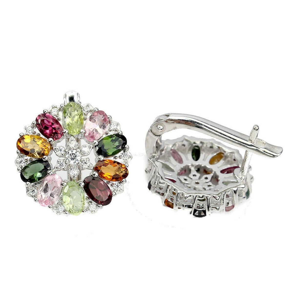 925 STERLING SILVER;PLATE-14K WHITE GOLD;MAIN STONE-TOURMALINE;TOTAL WEIGHT-6.46 GRAM (TOTAL WEIGHT OF SILVER + STONE);DIMENSION-* STONE 5.0 X 3.0 MM.* FACE EARRINGS 17.0 X 17.0MM.;MAIN STONE SHAPE-OVAL; MAIN STONE COLOR-MULTI-COLOR;CLARITY/GRADE-IF TO VVS;TREATMENT-UNHEATED;ORIGIN-BRAZIL;