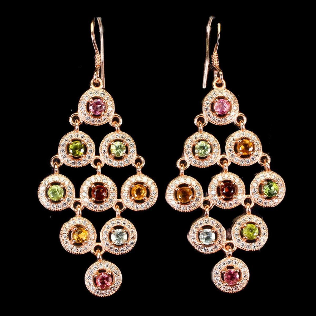 925 STERLING SILVER;PLATE-14K ROSE GOLD;MAIN STONE-TOURMALINE; TOTAL WEIGHT-8.62 GRAM (TOTAL WEIGHT OF SILVER + STONE);DIMENSION-* STONE 3.0 MM. * CZ 1.0 MM. * FACE EARRINGS 56.0 X 24.0 MM.;MAIN STONE SHAPE--ROUND CUT;MAIN STONE COLORMULTI-COLOR;CLARITY/GRADE-IF TO VVS;TREATMENT-UNHEATED;ORIGIN-BRAZIL;HARDNESS-7.0-7.5;