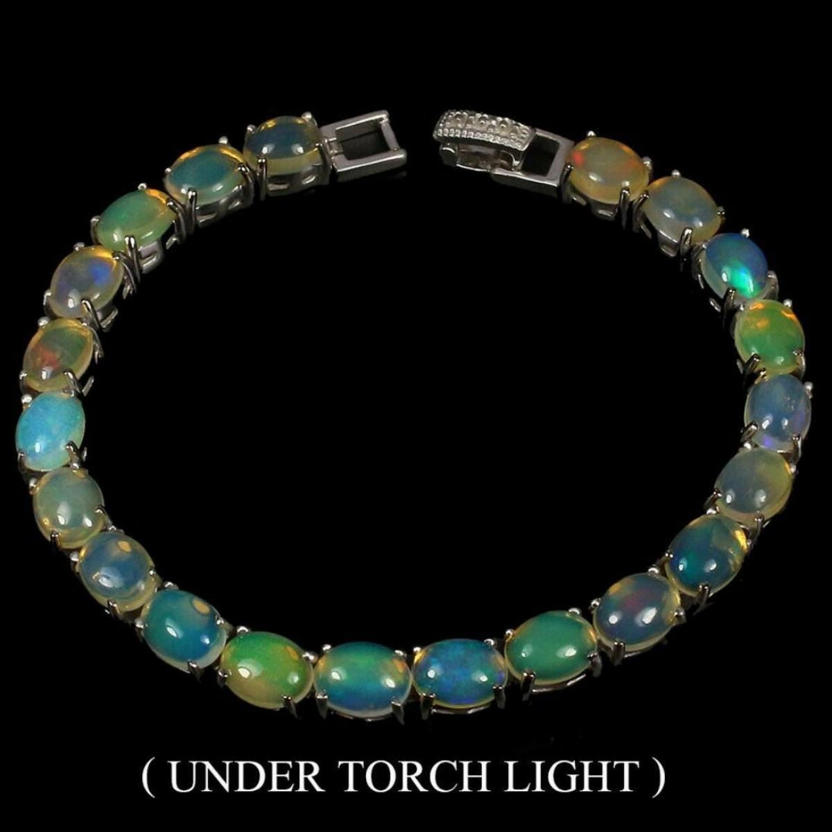 925 STERLING SILVER;PLATE-14K WHITE GOLD;LENGTH- (INCHES)7.5;MAIN STONE-FIRE OPAL;TOTAL WEIGHT-18.3 GRAM (TOTAL WEIGHT OF SILVER + STONE)DIMENSION-* STONE 8.0 X 6.0 MM. * FACE BRACELET 165.0 X 6.0 MM.;;MAIN STONE SHAPE-OVAL CABOCHON;MAIN STONE COLOR-RAINBOW FULL FLASH;TREATMENT-UNHEATED;ORIGIN-ETHIOPIA;HARDNESS-5.5 - 6.5;