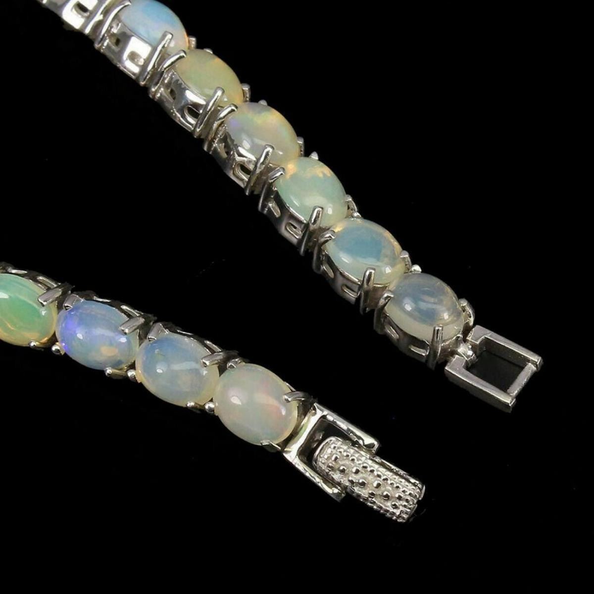 925 STERLING SILVER;PLATE-14K WHITE GOLD;LENGTH- (INCHES)7.5;MAIN STONE-FIRE OPAL;TOTAL WEIGHT-18.3 GRAM (TOTAL WEIGHT OF SILVER + STONE)DIMENSION-* STONE 8.0 X 6.0 MM. * FACE BRACELET 165.0 X 6.0 MM.;;MAIN STONE SHAPE-OVAL CABOCHON;MAIN STONE COLOR-RAINBOW FULL FLASH;TREATMENT-UNHEATED;ORIGIN-ETHIOPIA;HARDNESS-5.5 - 6.5;