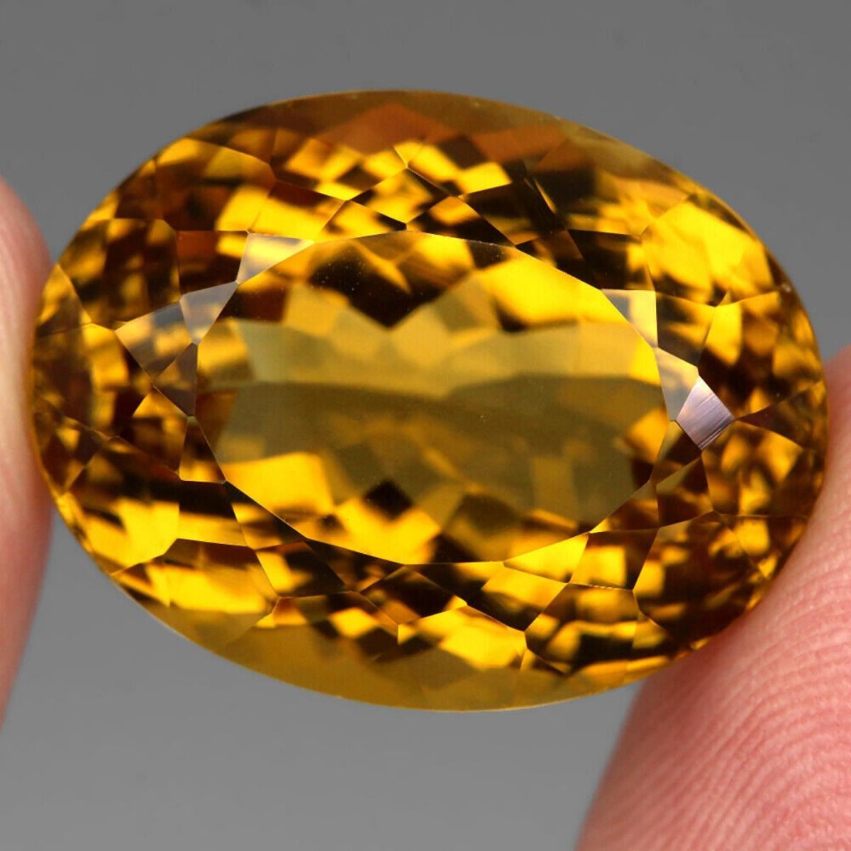 MAIN STONE-CITRINE;TOTAL WEIGHT-33.25 CT;DIMENSION-22.0 X 17.0 X 15.0 MM.;MAIN STONE SHAPE-OVAL; MAIN STONE COLOR- YELLOW;CLARITY/GRADE-VVS;TREATMENT-UNHEATED;ORIGIN-BRAZIL;HARDNESS-7;