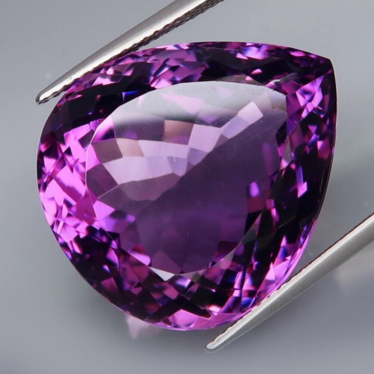 Amethyst Pear Shape; WEIGHT 39.15 Ct.; SIZE 22.8 X 20 X 14.4 mm; QUANTITY 1 Piece; COLOR Purple CLARITY CLEAN LUSTER Superior ORIGIN Bolivia; TREATMENT None HARDNESS 7