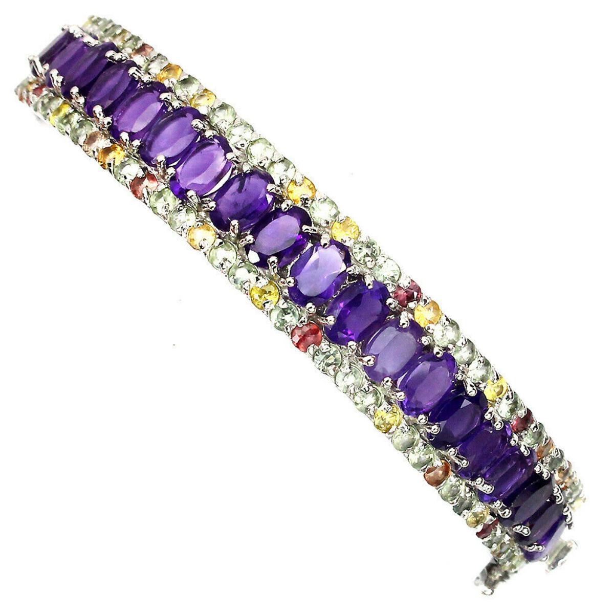 925 STERLING SILVER;PLATE-14K WHITE GOLD;MAIN STONE-AMETHYST;OTHER GEMS-SAPPHIRE ;TOTAL WEIGHT-19.95 GRAM (TOTAL WEIGHT OF SILVER + STONE)DIMENSION-* STONE 2.5 TO 6.0 X 4.0 MM. * DIAMETER 2.5 X 2.4 INCHES. * FACE BANGLE 62.0 X 11.0 MM.;MAIN STONE SHAPE-OVAL CUT;MAIN STONE COLOR- PURPLE;CLARITY/GRADE-IF TO VVS;TREATMENT-UNHEATED;ORIGIN-BRAZIL;HARDNESS-7;