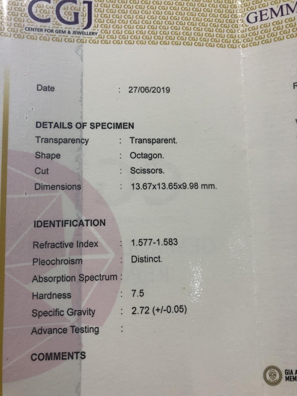 Natural Untreated Aquamarine 12.58 Cts - VVS....Octagon - Scissors Cut, Size - 13.67 x 13.65 x 9.98 MM...color - Greenish/Blue......Origin - completely untreated....Origin - Brazil