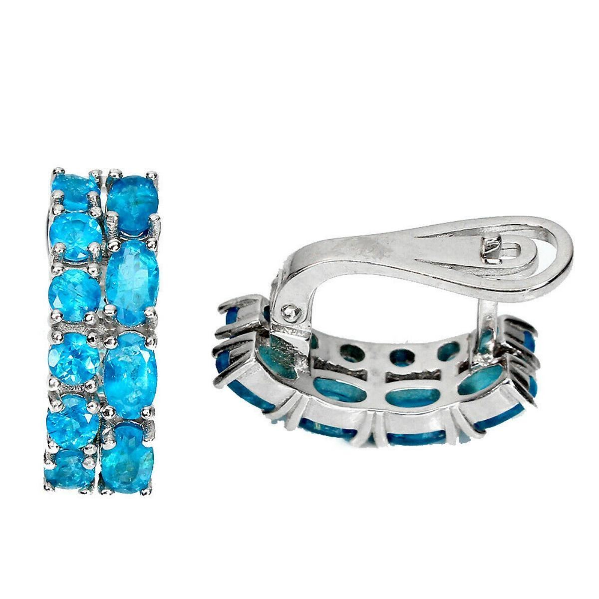 925 STERLING SILVERPLATE-14K WHITE GOLDMAIN STONE-APATITE;TOTAL WEIGHT-5.85 GRAM (TOTAL WEIGHT OF SILVER + STONE)DIMENSION-* STONE 3.0 TO 5.0 X 3.0 MM. * FACE EARRINGS 19.0 X 6.0 MM.;MAIN STONE SHAPE-OVAL CUT;MAIN STONE COLOR-TOP PARAIBA BLUE;CLARITY/GRADE-IF TO VVS;TREATMENT-UNHEATED;HARDNESS-5;
