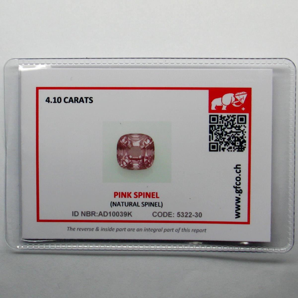 Natural Untreated Burma Purple Spinel - Certified; SHAPE Classic Cushion; WEIGHT 4.10 Ct.; SIZE 9.05 X 9.05 X 6.14 mm; QUANTITY 1 Piece; COLOR Lavender; CLARITY VS; LUSTER Superior ORIGIN Myanmar TREATMENT None HARDNESS 8