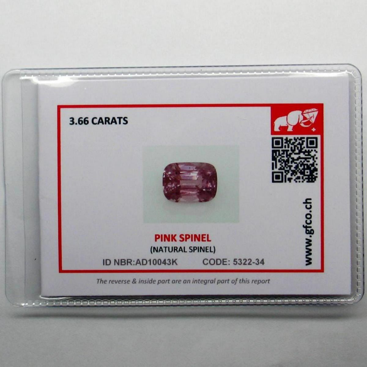 Natural Untreated Burma Purple Spinel - Certified; SHAPE Classic Cushion WEIGHT 3.66 Ct. SIZE 9.81 X 7.55 X 5.65 mm QUANTITY 1 Piece COLOR Purple Pink CLARITY VS; LUSTER Superior ORIGIN Myanmar TREATMENT None HARDNESS 8