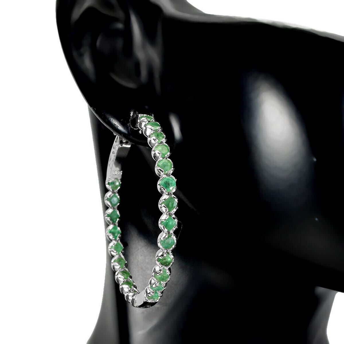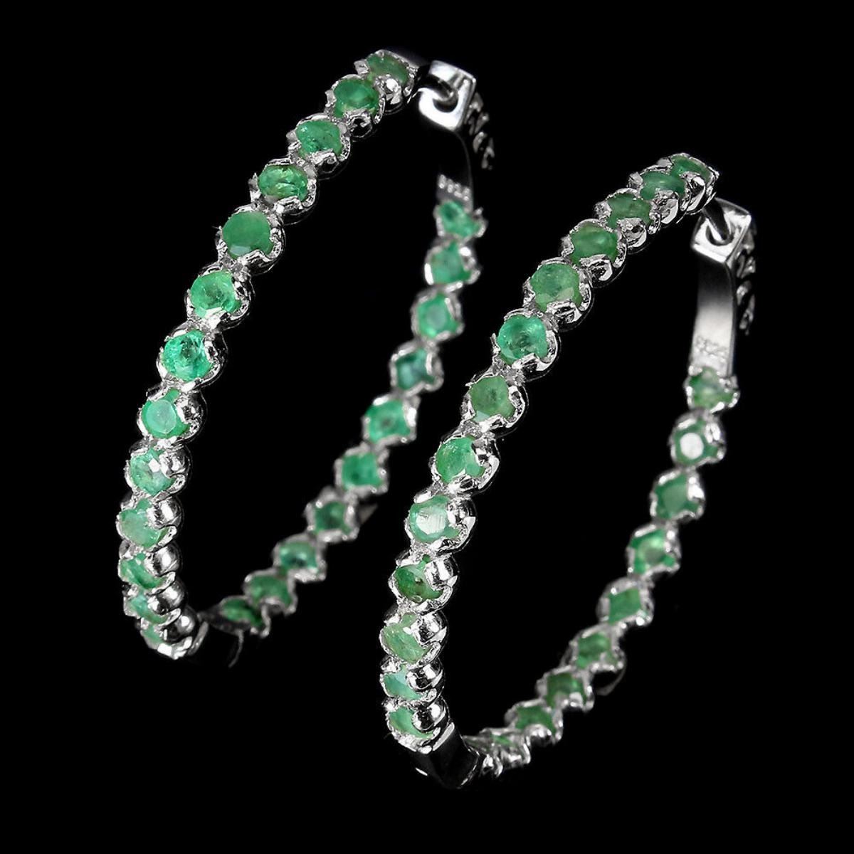 925 STERLING SILVER;PLATE-14K WHITE GOLD;MAIN STONE-EMERALD;TOTAL WEIGHT-8.72 GRAM (TOTAL WEIGHT OF SILVER + STONE)DIMENSION-* STONE 3.0 MM.;* FACE EARRINGS- 35.0 X 4.0 MM.;MAIN STONE SHAPE--ROUND CUT;MAIN STONE COLOR-GREEN;TREATMENT-UNHEATED;ORIGIN-COLOMBIA